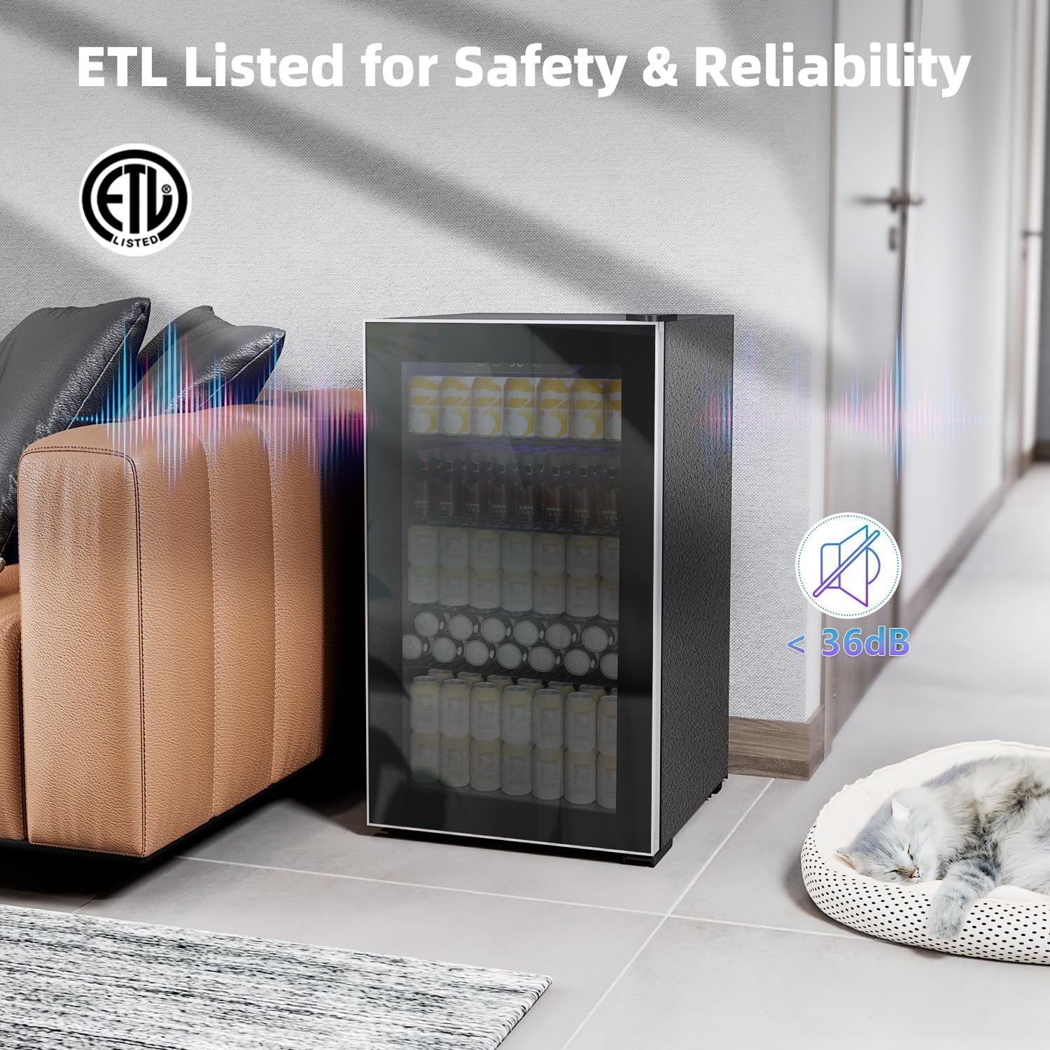 - 【Fast, Even Cooling】Drink Fridge advanced 360° airflow keeps every drink perfectly chilled. The double-sealed glass door locks in cold air for maximum freshness.