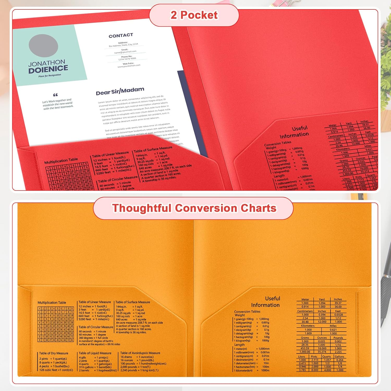 - Handy Conversion Tables: each folder pocket includes a well designed calculation conversion table, making math problems a cinch; These plastic binder folders are ideal for students and professionals needing quick calculations