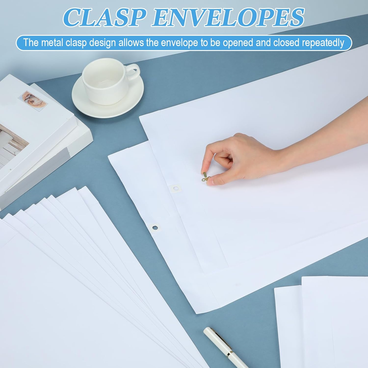 - Robust Construction for Extra Security: the strength of our large envelopes lies in their construction; Crafted from kraft paper and equipped with sturdy metal clasps, our envelopes resist tearing and are extremely durable; You can trust them with your important files