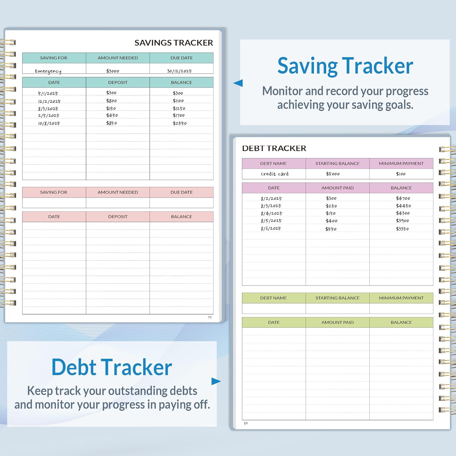 - DATED DESIGN & 1 YEAR USE - 2026 Dated finance books included 1 page-financial goals, 1 page-Mind Map, 1 page-Financial Strategy, 1 page-Tactics, 2 pages-Important Dates, 4 pages-Bill Tracker, 4 pages-Saving Tracker, 8 pages-Debt Tracker, followed by 12 Months(10 pages per month, 1 unique color for each month). 2 pages-Christmas Budgeting, 2 pages-Yearly Summary, 2 pages-Check Register and 12 pages-Notes(dotted). DATED format enhances time management; Ideal for year-long financial planning.
