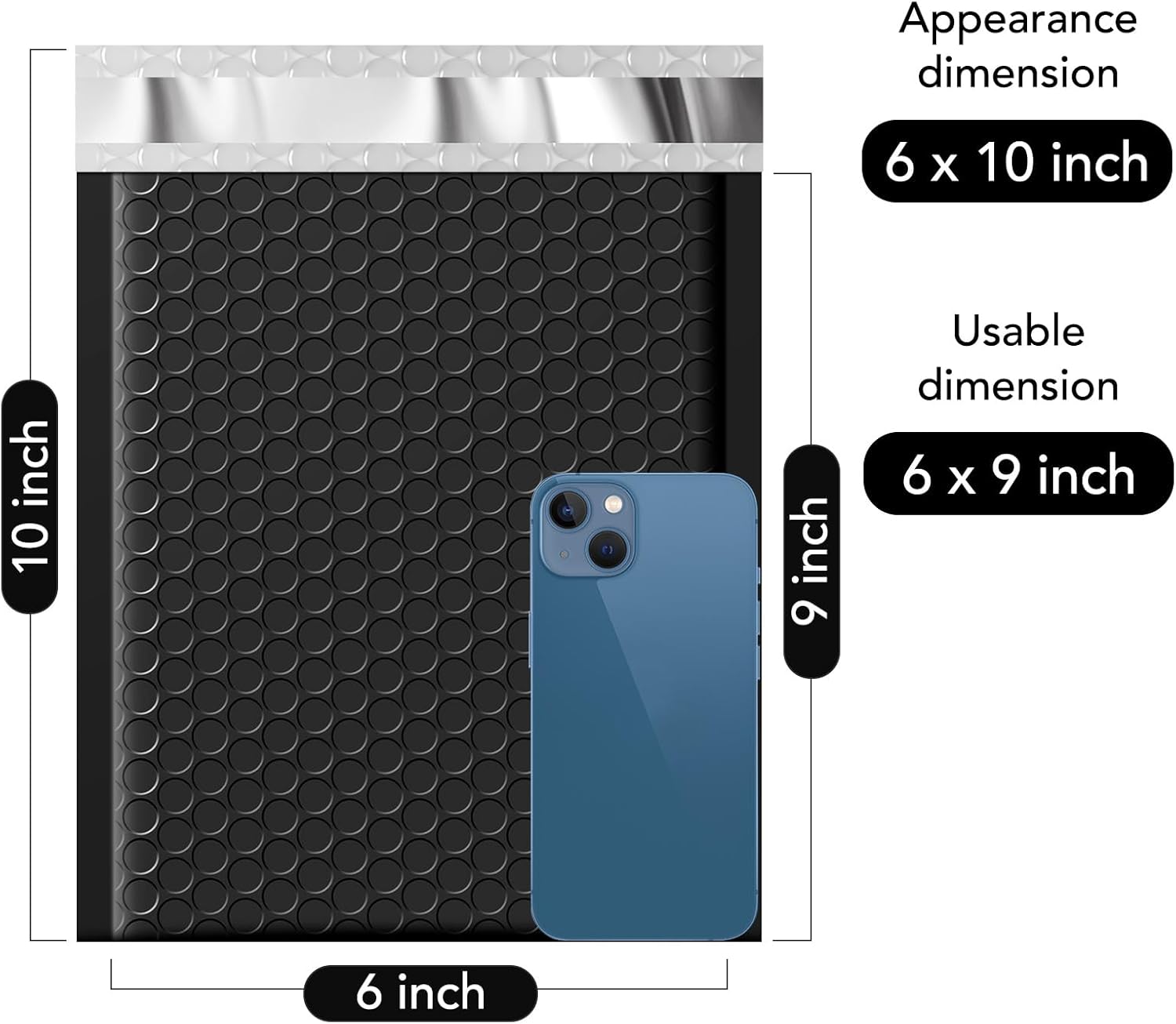 - Perfect Size Bubble Mailers:The bubble envelopes outer size is 6x10 inch, while the inner size is 6x9 inch.Perfect for Jewelry, cards, CDs, Phone Cases, lips, smaller books and more and more.