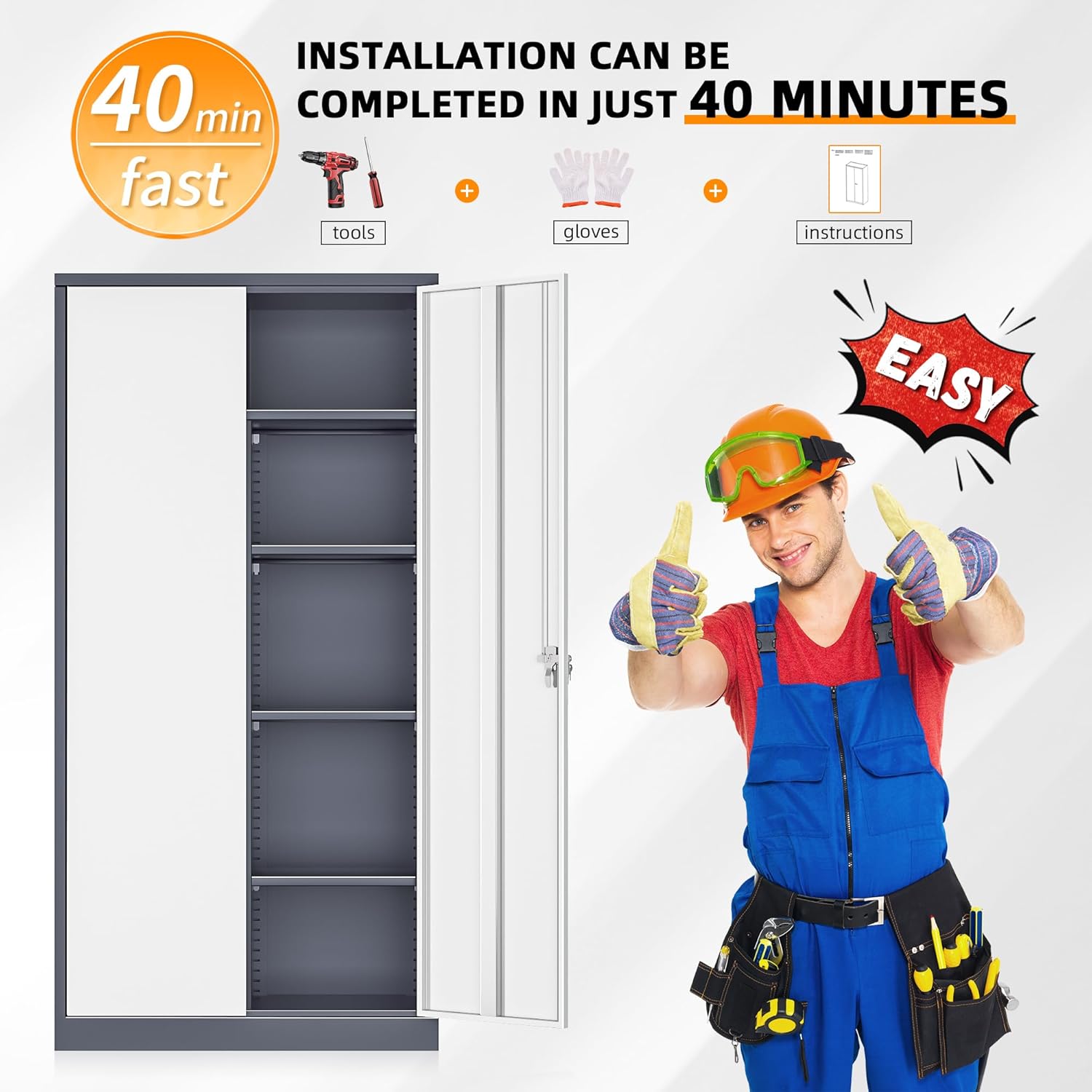 - 【Easy assembly】: Metal storage cabinet with 2 locking doors can be assembled step by step. There are 4 pre-holes on the back of the steel cabinet, you can screw it to the wall for stability.