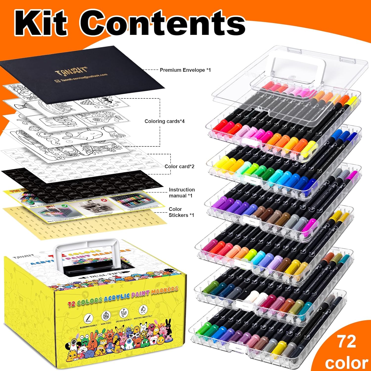 - VIBRANT COLORS: This complete set of TANMIT dual Tip acrylic markers comes with 72 unique and vibrant color options to choose from, rich primary and complementary colors with no duplicates, and each color goes with the corresponding number on the pen for easy identification and organization, making it easy for you to choose exactly the right color every time. A variety of colors allows you to let your imagination run wild and have unlimited creative possibilities~