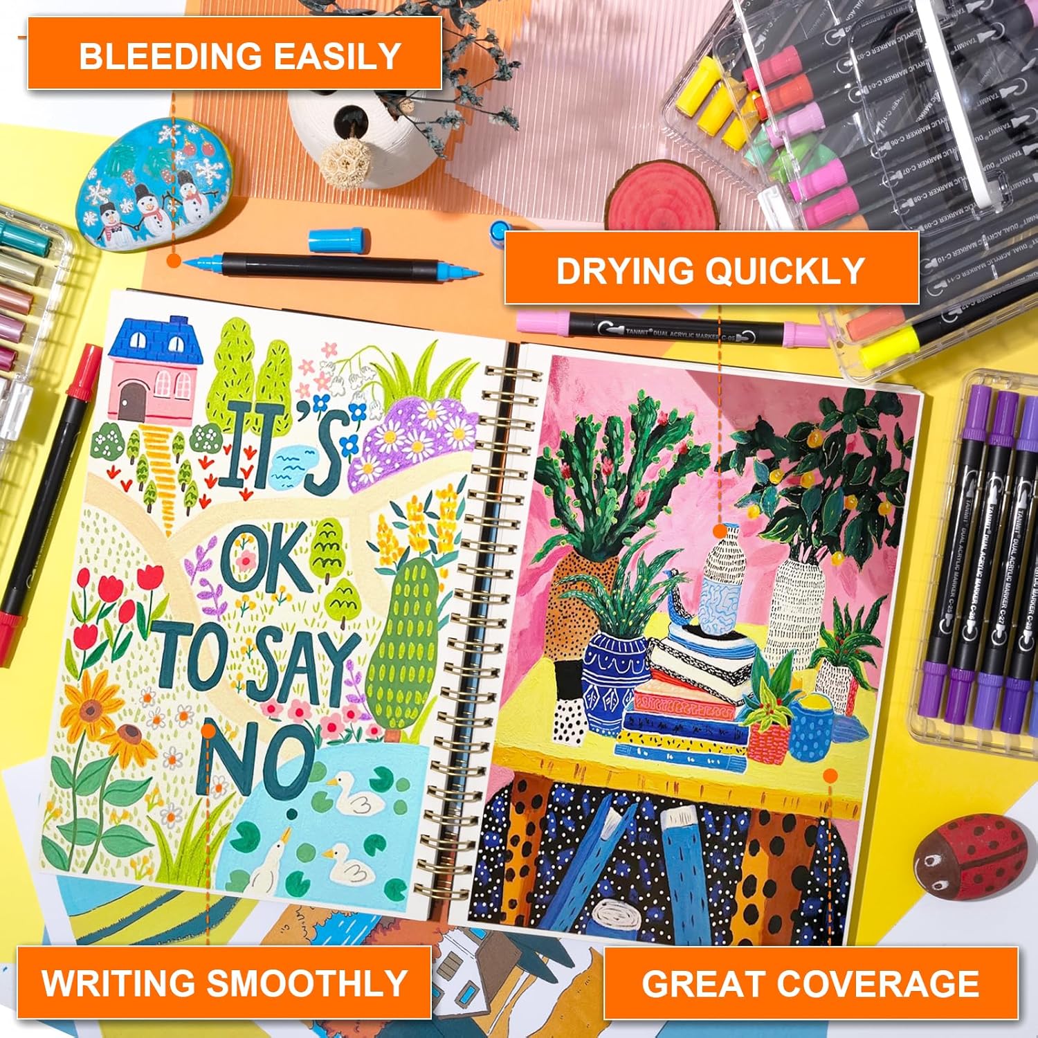 72 Colors Acrylic Paint Markers, Dual Tip Acrylic Paint Pens for Rock Painting, Wood, Canvas, Stone, Glass, Ceramic Surfaces, DIY Crafts Making Art Supplies (Brush Tip and Fine Tip)