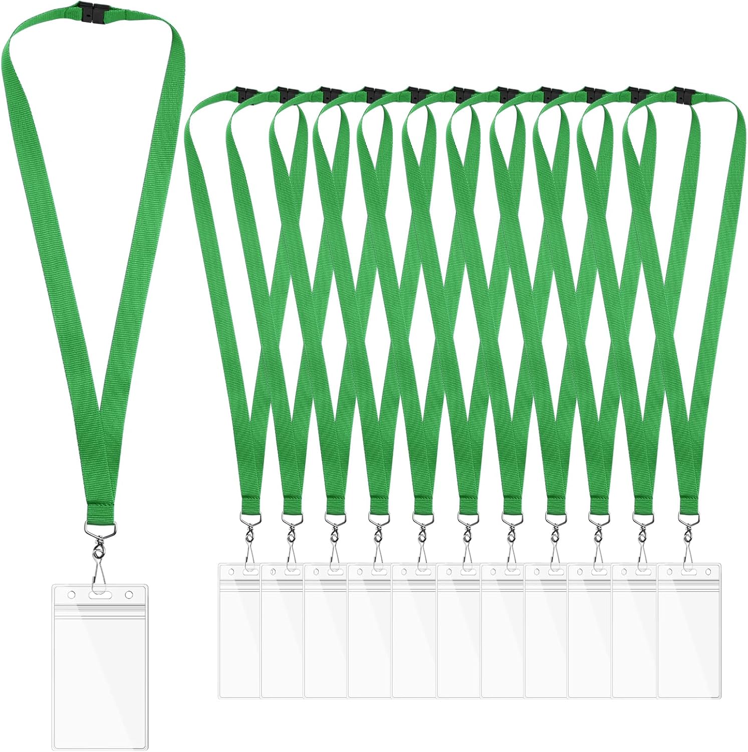 12 Pack Green Breakaway Lanyards with Waterproof Badge Holders, Metal Hook, Polyester Neck Straps for ID Cards, Events, Office, and Schools