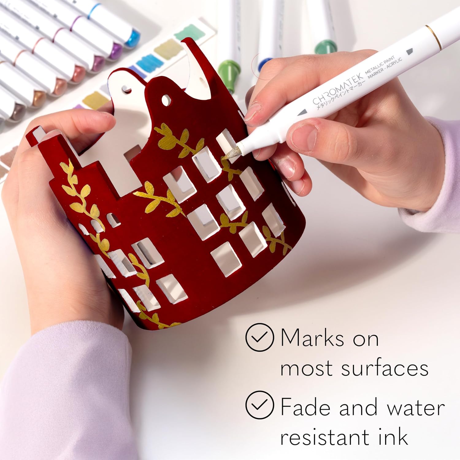 - Endless Creative Uses: Perfect for lettering, calligraphy, DIY crafts, and custom decorations. Design personalized greeting cards, decorate ornaments, paint on glass or wood, or brighten up everyday objects. These markers are your go-to tool for home projects, party decor, journaling, and creative gifts. With endless applications, Chromatek markers bring dazzling metallic style to any surface you can imagine. Fun, easy, and always eye-catching.