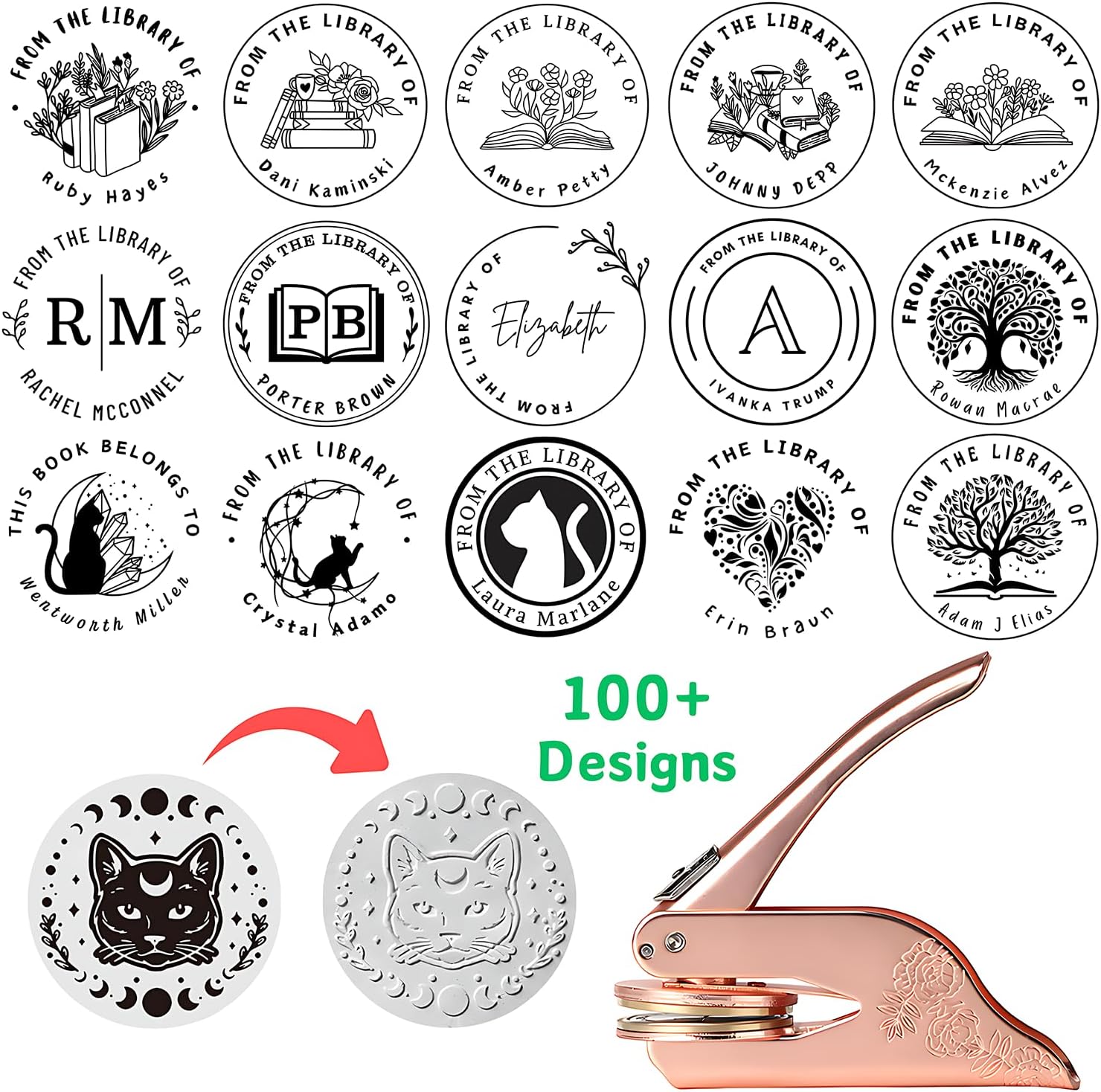 - [EASY TO CUSTOM BOOK EMBOSSER]: Customize book embosser by clicking "Customize Now". Just enter your name or text you want to customize, and you can also upload your own design pattern.