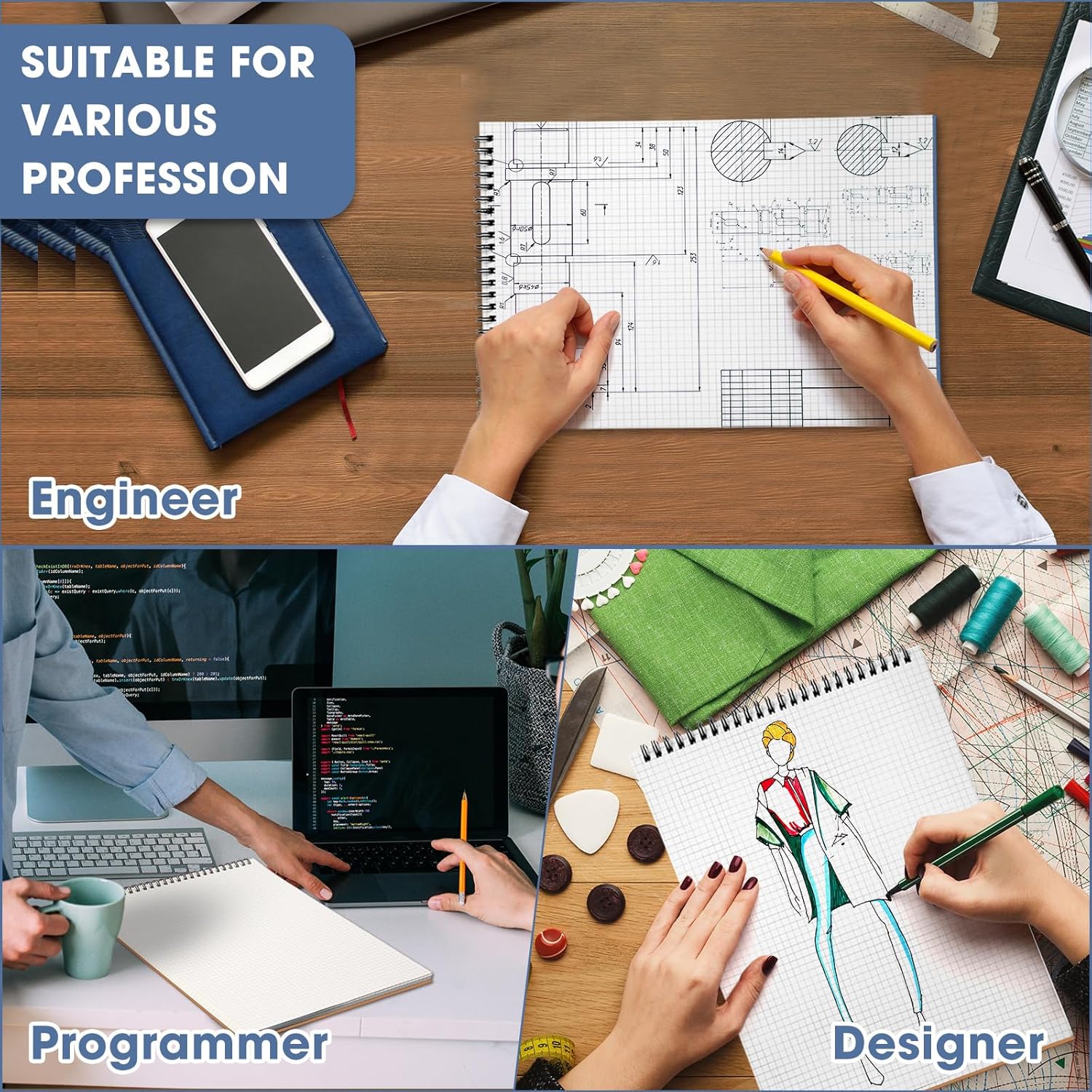 - Wide Application: the grid spiral notebook is multipurpose, and is essential for artists, architects, engineers, mathematicians, graphic designers, students and anyone who requires graphing, charting, diagramming, or quick shorthand applications, good for school, home or the office