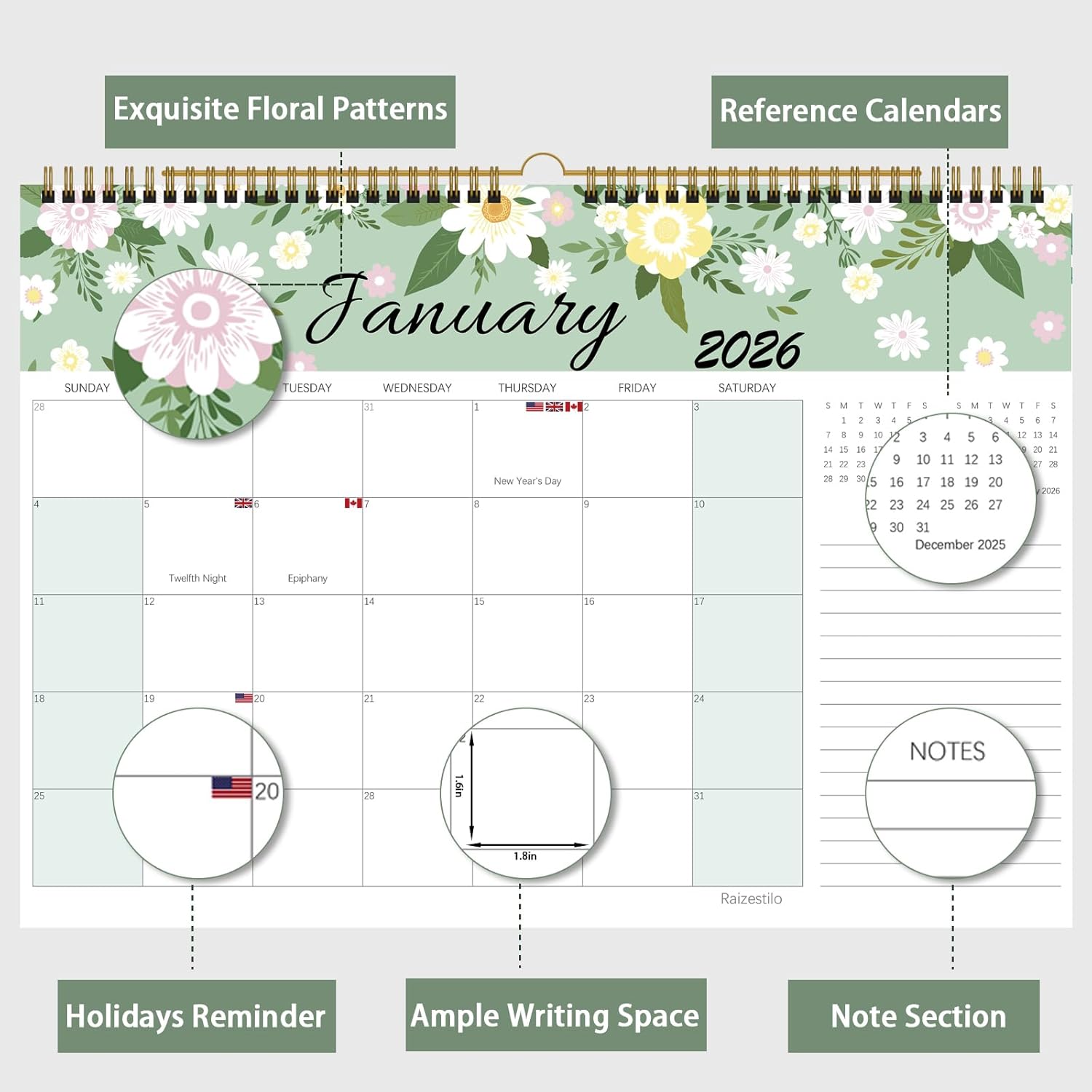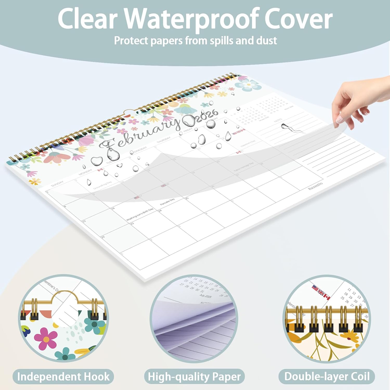 - Dual-Function Design: Desk or Wall Use— Transition seamlessly between desktop and wall display! The large calendar 2025-2026 includes pre-punched holes and a detachable hanging cord, offering flexible placement. Perfect as a desk calendar 2025-2026 for office use or an eye-catching wall calendar for home decor.