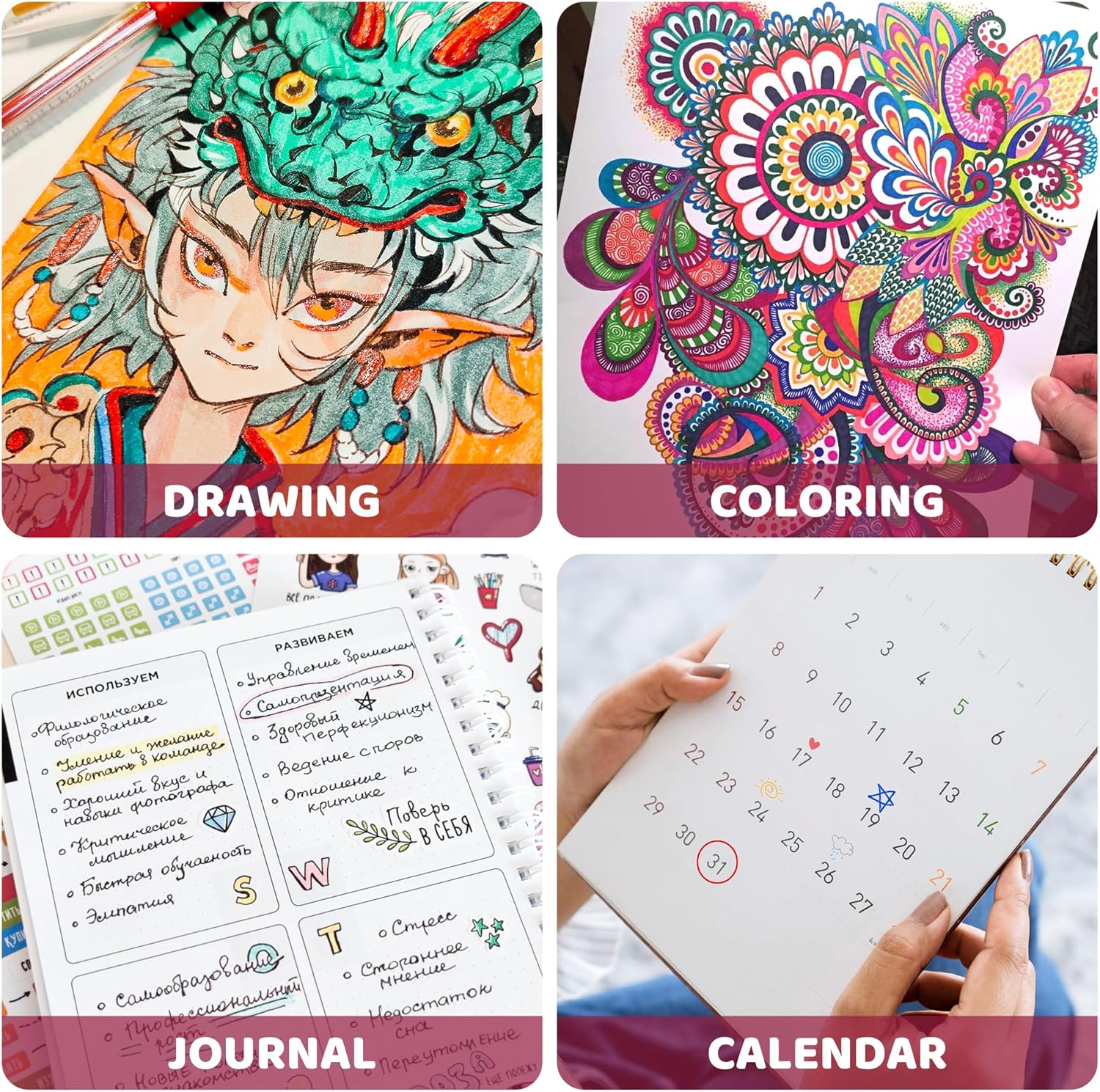 - 200 UNIQUE COLORS: including 9 color types, 200 vibrant colors---4 Metallic Sparkle,36 Glitter,24 Metallic,4 Classic,28 Pastel, 24 Neon, 16 Juice, 24 Glitter-Neon,43 Morandi. Each color type adds an extra charm to your artwork, making it truly stand out.