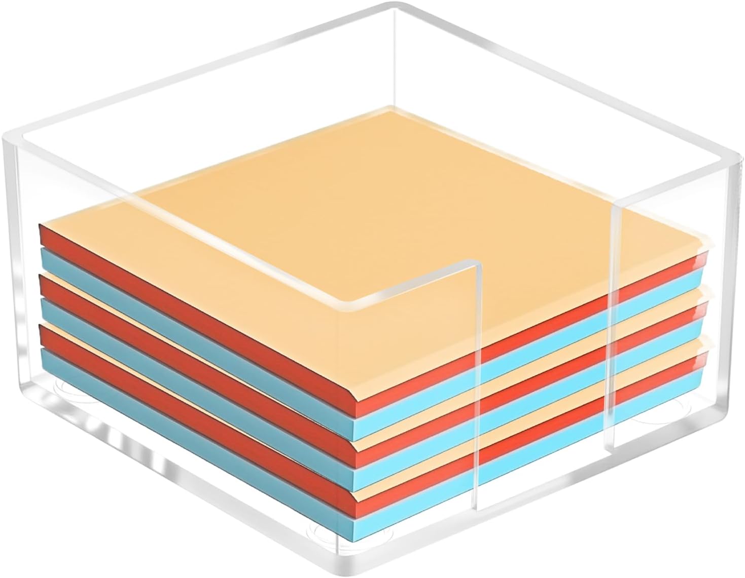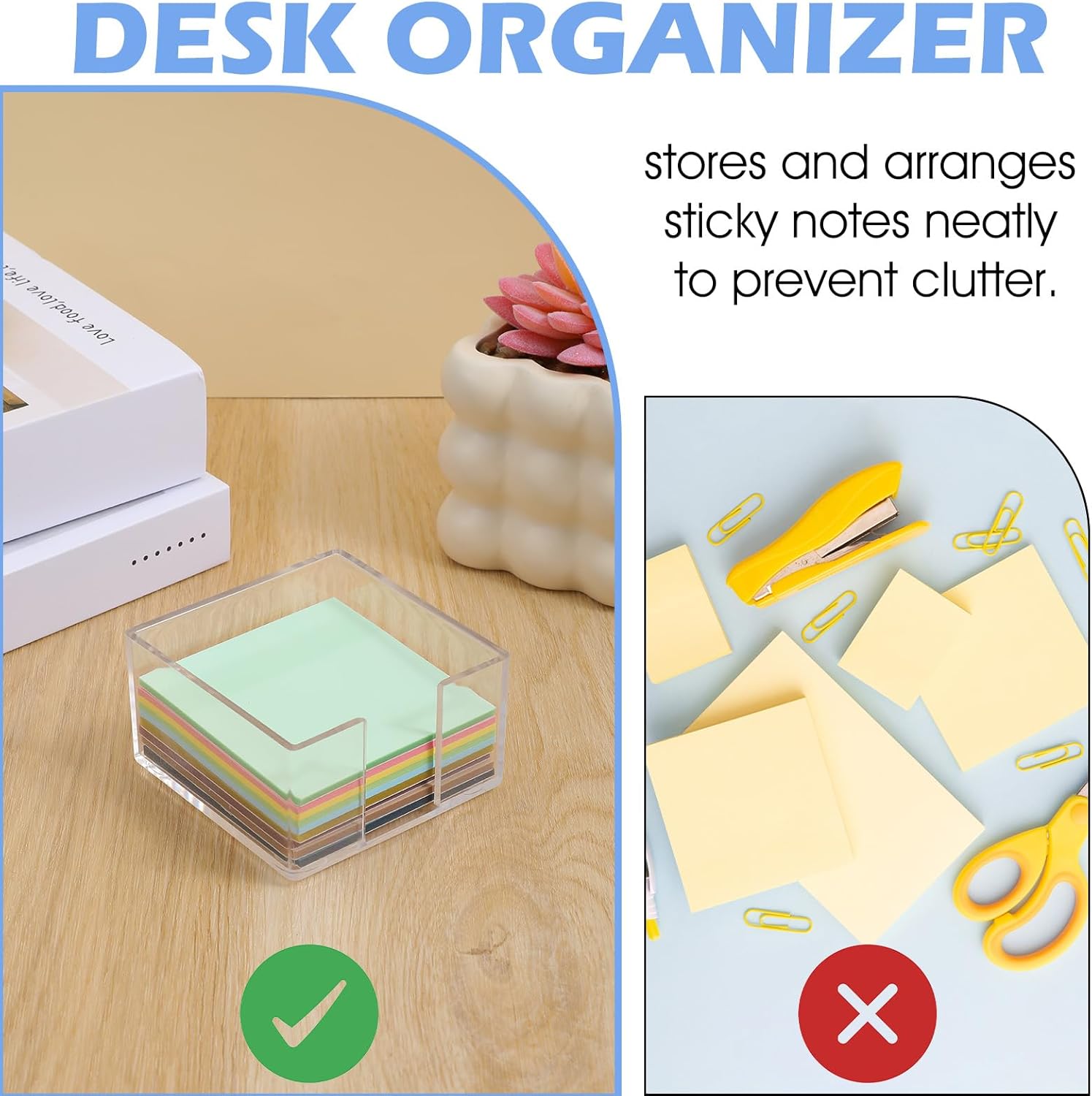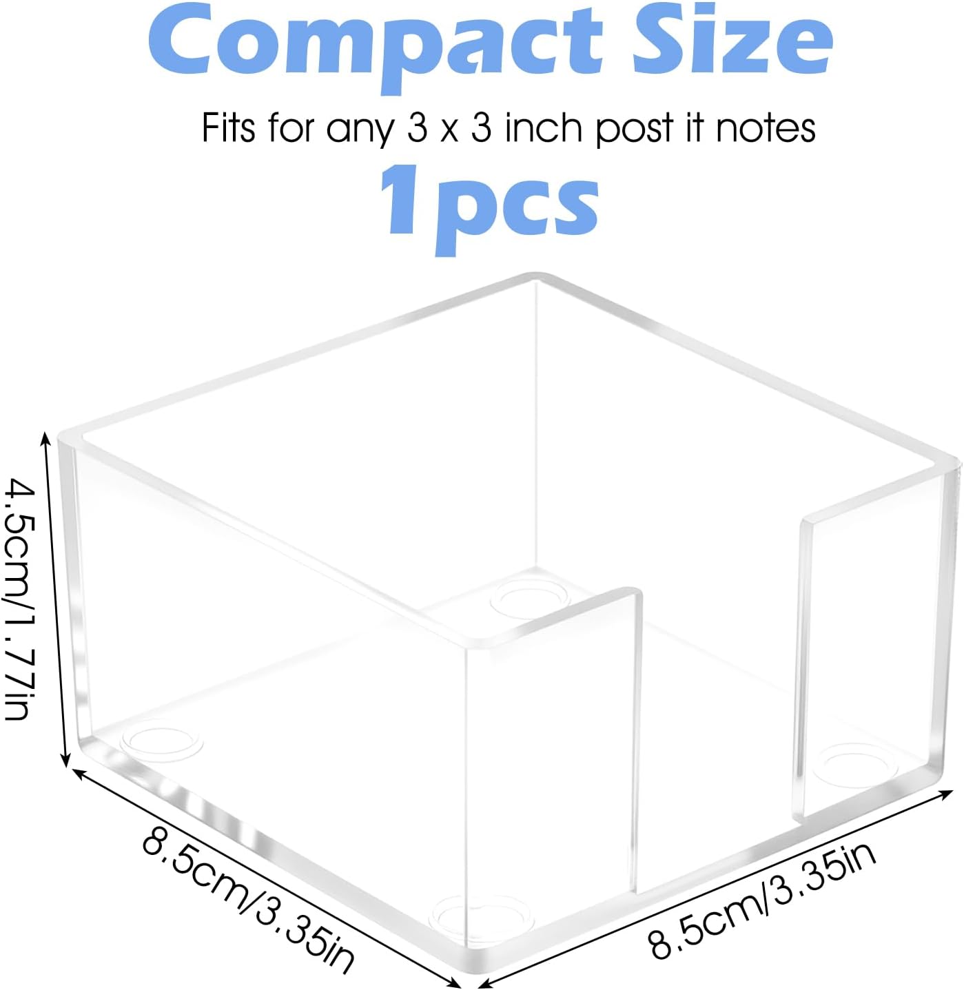 - 【Compact Design】: Our acrylic sticky note holder is designed to fit seamlessly into any workspace. Measuring 3.35 x 3.35 x 1.77 inches, this aesthetic office supplies piece keeps your sticky notes organized without taking up too much space