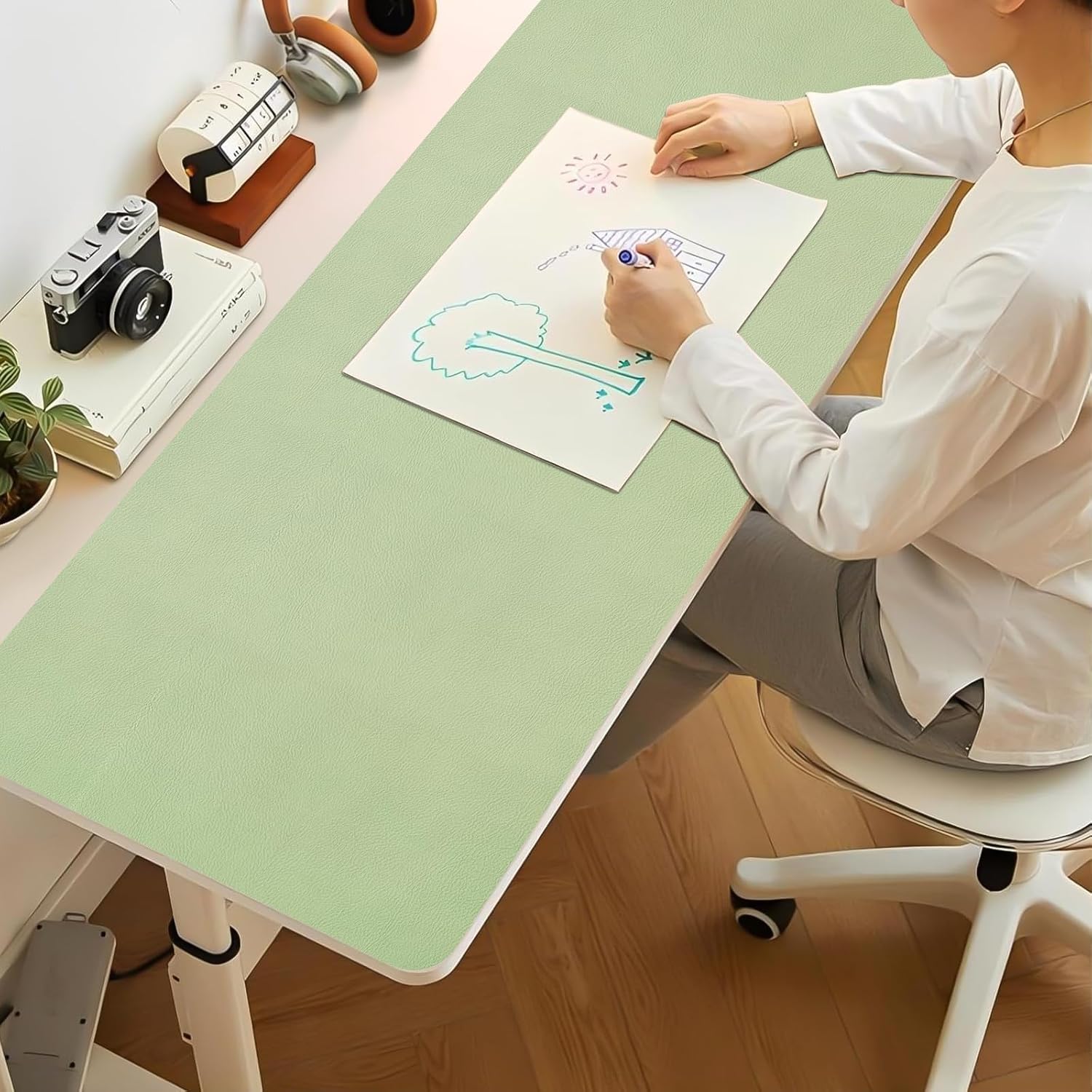 Bloss 47.2" x 16.9" Large Desk Mat, Leather Mouse Keyboard Pad, Non-Slip Writing Pad, Desk Protector for Office, Home - Light Green