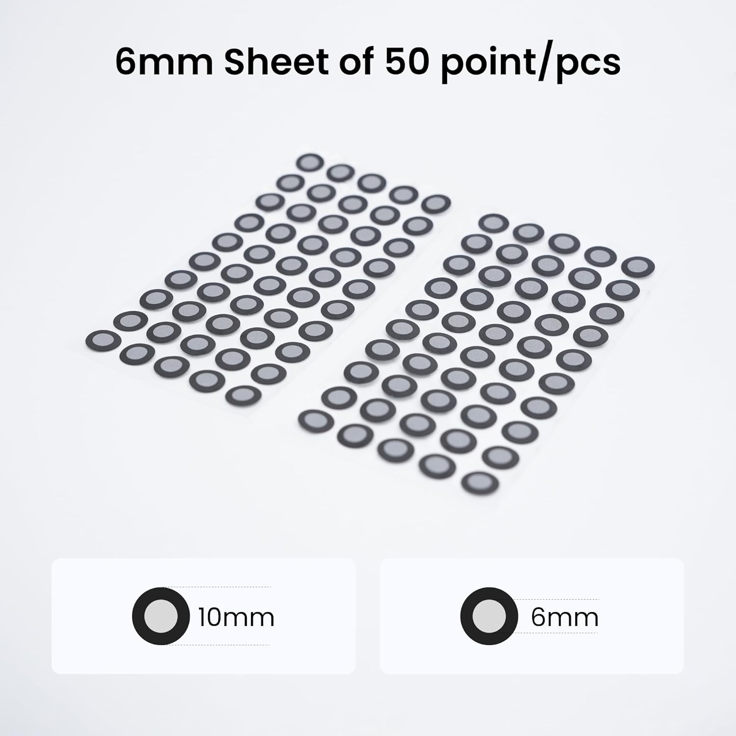 - Size: Inner diameter 6.0 mm,outer diameter10.0 mm, total 200 points in 4 sheets.