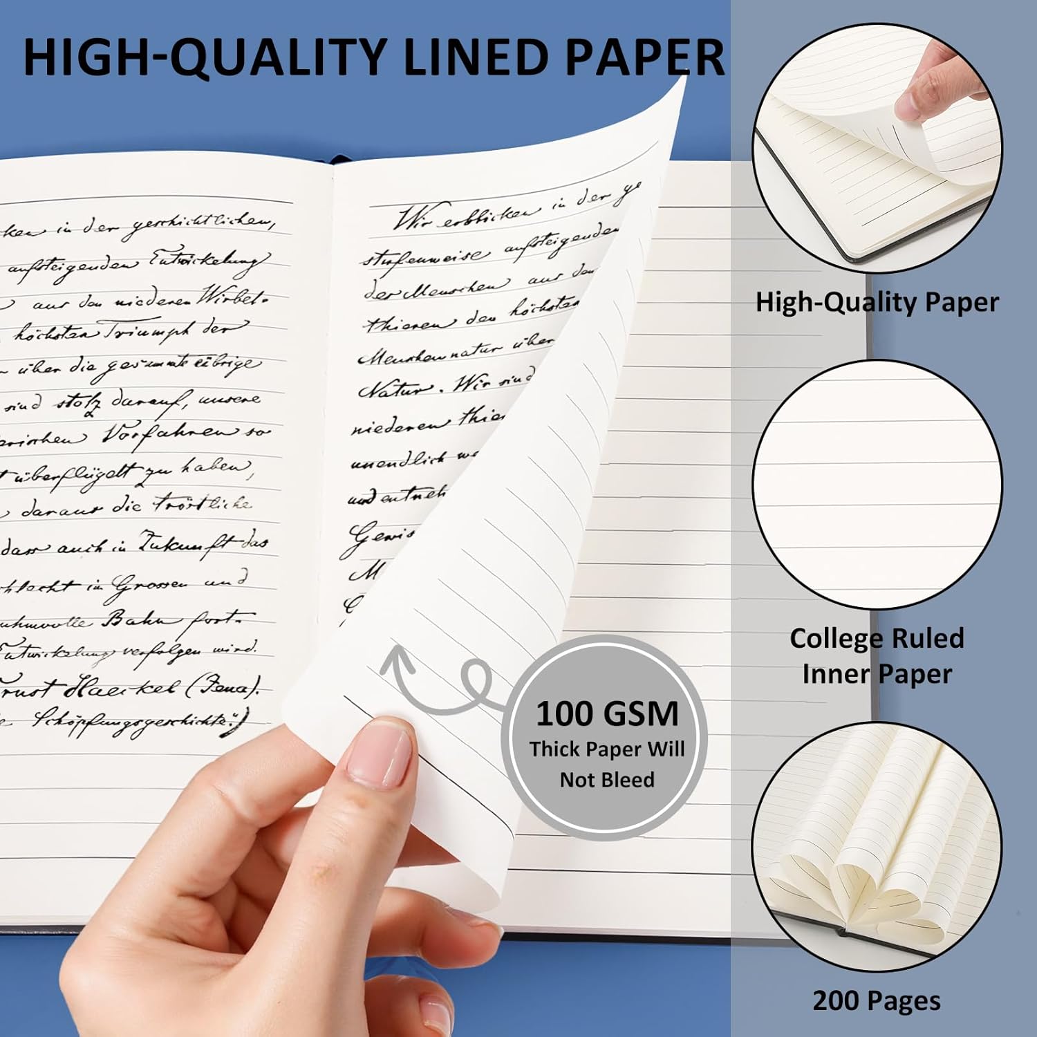 - Premium Thick Paper for Good Writing: The lined spiral notebook has 200 pages. Light color paper is not dazzling, allowing a comfortable writing experience. Our paper is thick and writing does not penetrate. You can confidently use most pens and markers without bleeding into the next page. This A5 college ruled journal notebook supports double-sided use, greatly increasing usage space. The rounded corner edge keeps it flat without folding while protecting your hands from scratches.