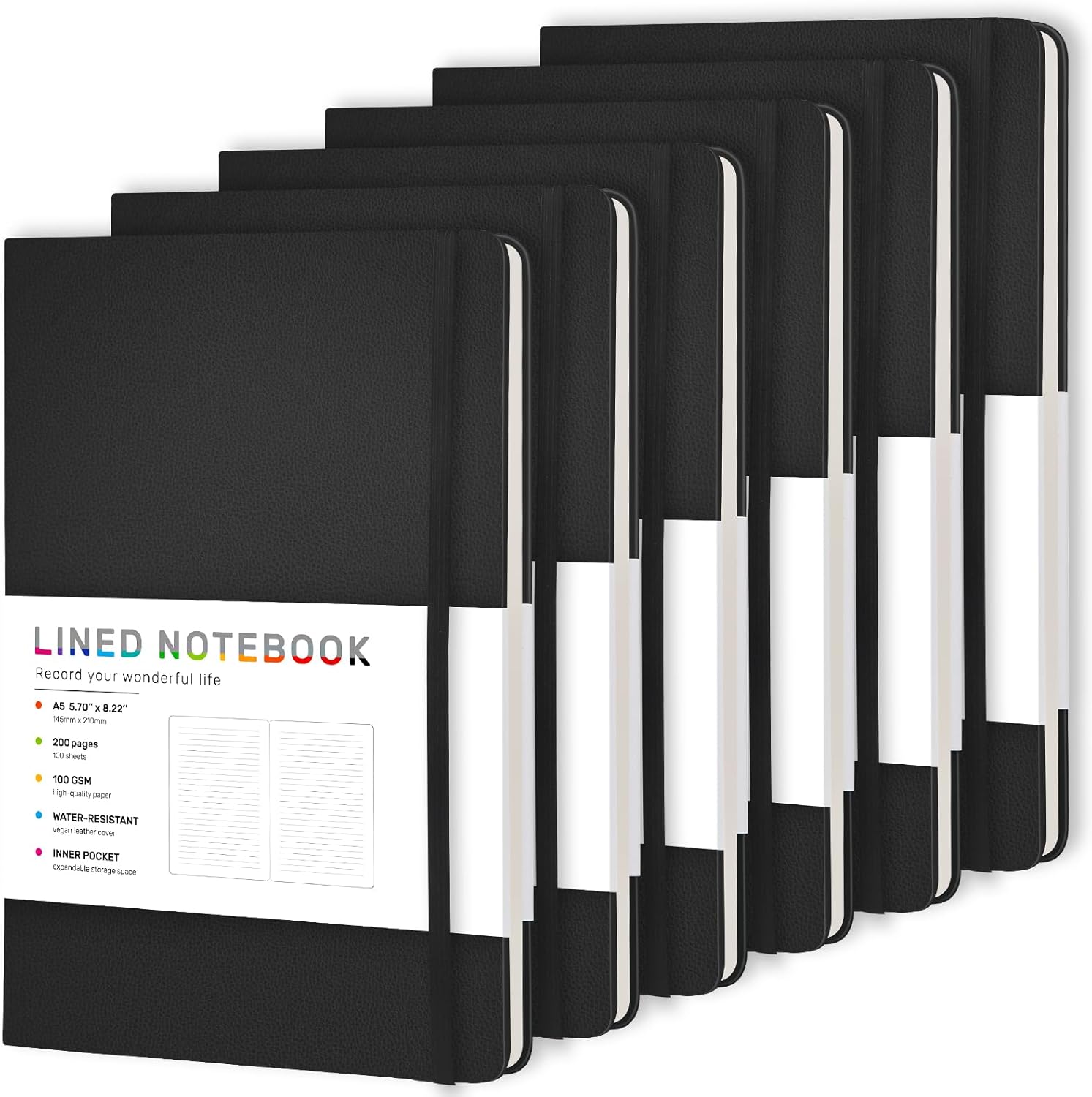 - Suitable for Many Occasions: This bulk set of 6 classic black A5 journals is suitable for school, college, office, home, business, and lab. Simple and useful, the black A5 journals notebook allows you to have clear and organized writing, making you more efficient for study and work. It can also be a recorder of your wonderful life, and unleash your mood and ideas. Ideal for personal daily notebooks, work notebooks, college ruled notebooks, travel journals, or for note-taking in college or meetings.