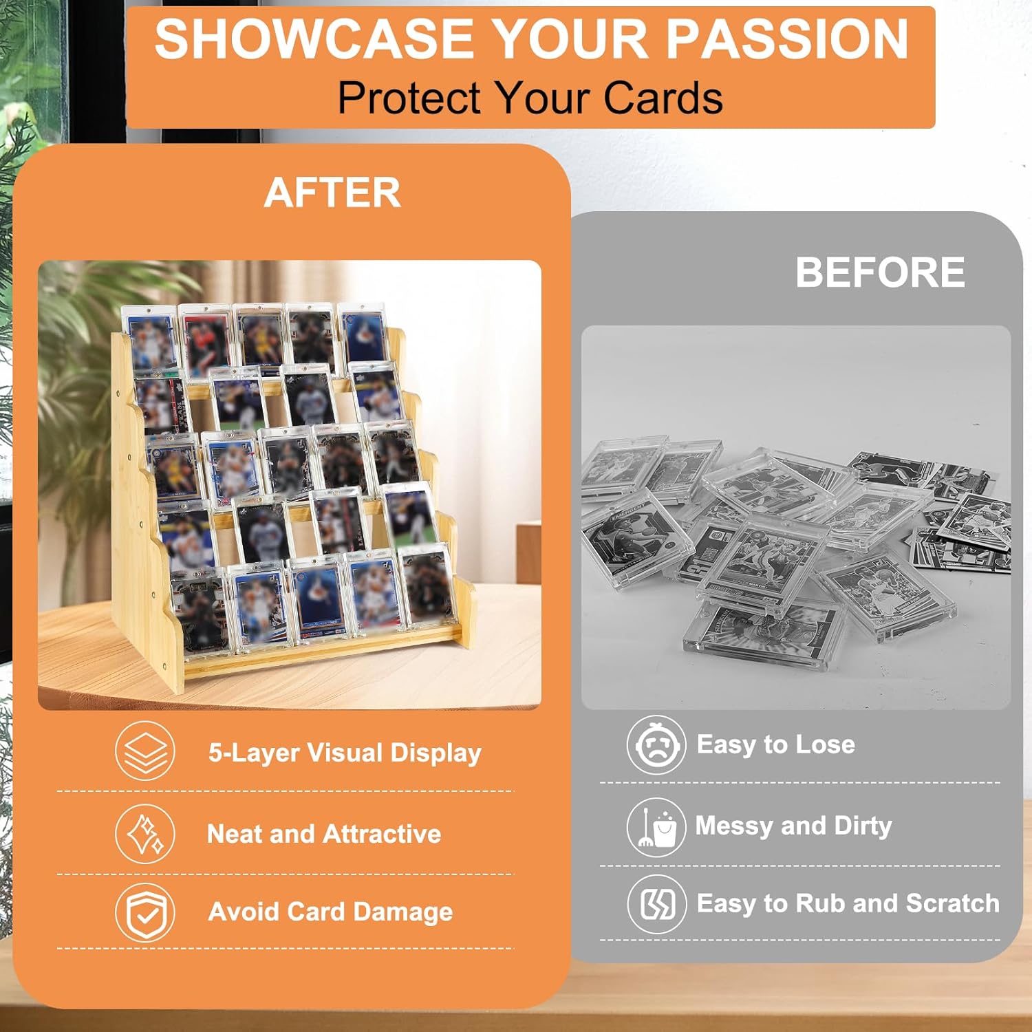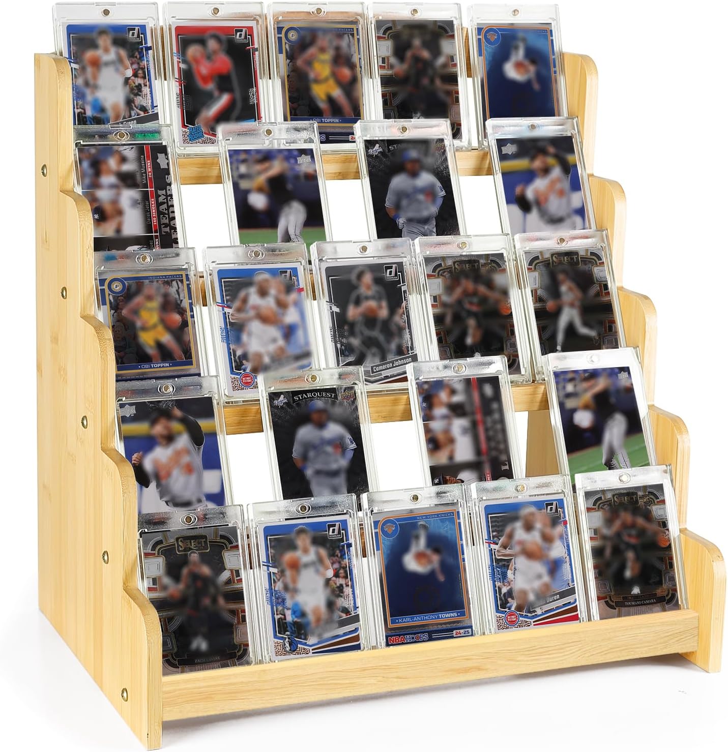 5-Tier Bamboo Trading Card Display Case,35 pt Baseball Card Collection Stand, Sports Card Storage Holder,Card Game Collection (Burlywood)