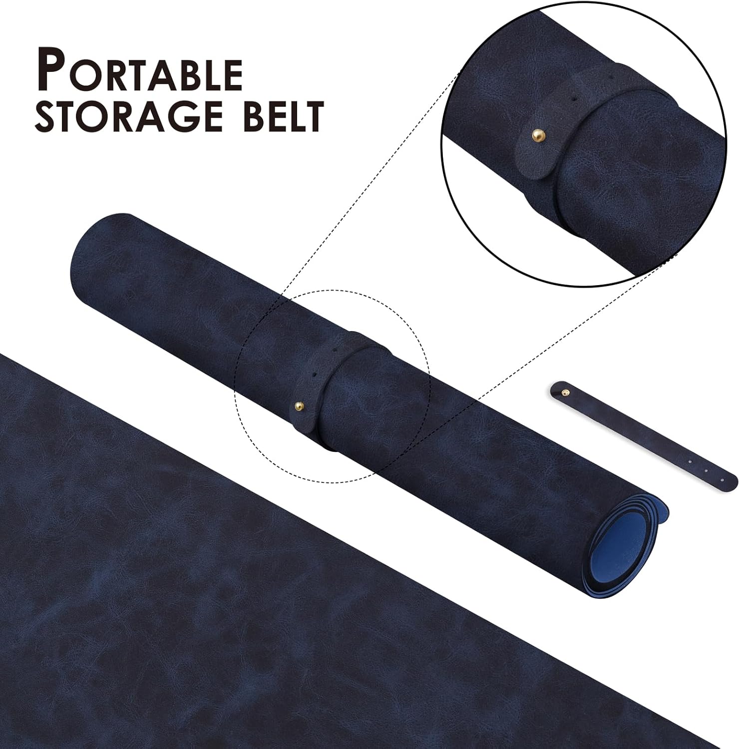 Distressed Leather Desk Mat - Non-Slip PU Desk Pad for Office and Home - Desk Organization and Accessories - Ideal for Large Mouse Pad and Desk Mats on Top of Desks(Navy Blue,36"x 17")