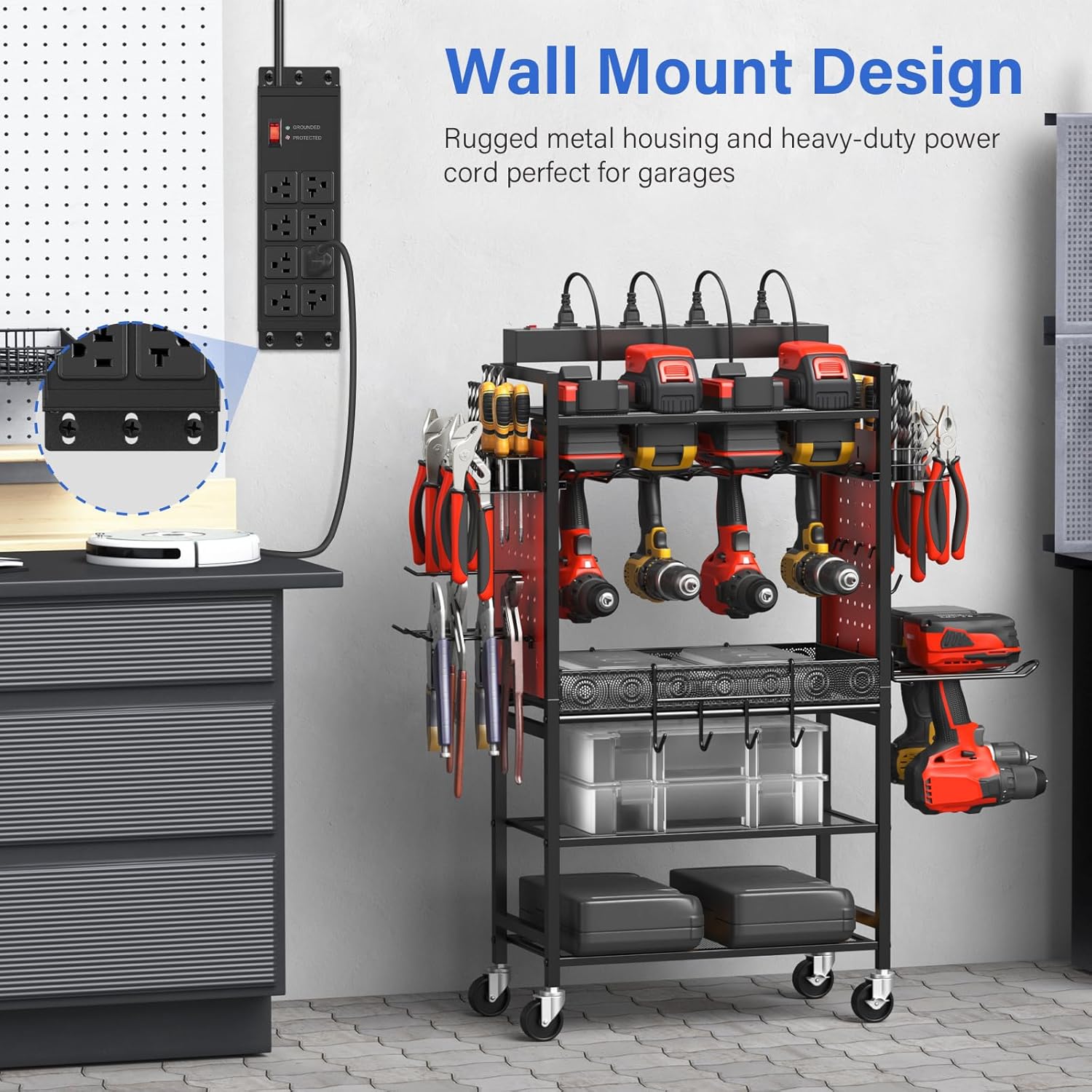 - Heavy duty magnetic power strip with 8 outlets, come with 12 gauge heavy duty extension cord. Wall mount design, 5-20R, 6-20R and come with standard 3 prong 5-15P plug.