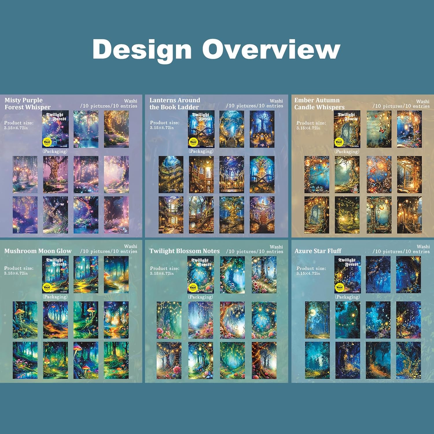 - Mystical Woodland Designs:Includes 60 washi stickers in 6 packs, each with 10 unique forest-themed designs. These dreamy twilight and mystical woodland scenes add a magical, natural touch to journals and scrapbooks