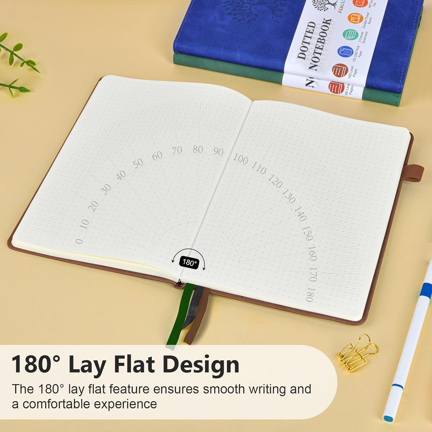 - ăSTURDY HARDCOVER & LA-FLAT DESIGNăďźDesigned for daily use, this hardcover notebook boasts a lay-flat binding that opens 180° for effortless writing. Its professional finish suits both office desks and travel bags, while the reinforced spine ensures long-term durability.