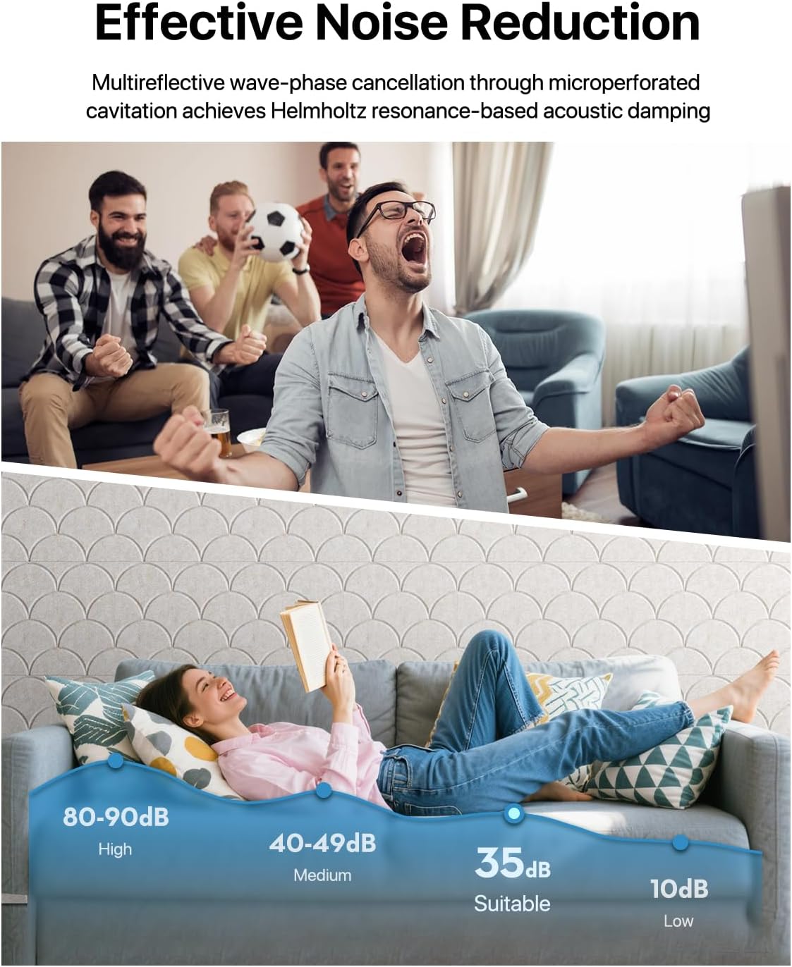 - Noise Reduction Performance: Experience superior sound control with self-adhesive soundproof panels, crafted from 150kg/m³ high-density polyester fiber, effectively absorbing both high- and low-frequency noise. Perfect for recording studio acoustical treatments and home theaters.