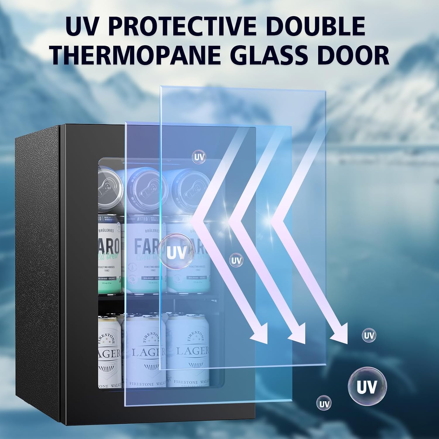 - 【Spacious Yet Compact Design】Mini fridge holds up to 24 standard cans in a sleek, space-saving footprint (approx. 0.6 cu.ft.), making it mini fridge for bedroom, home bars, dorm rooms, offices, or small kitchens without sacrificing storage capacity.