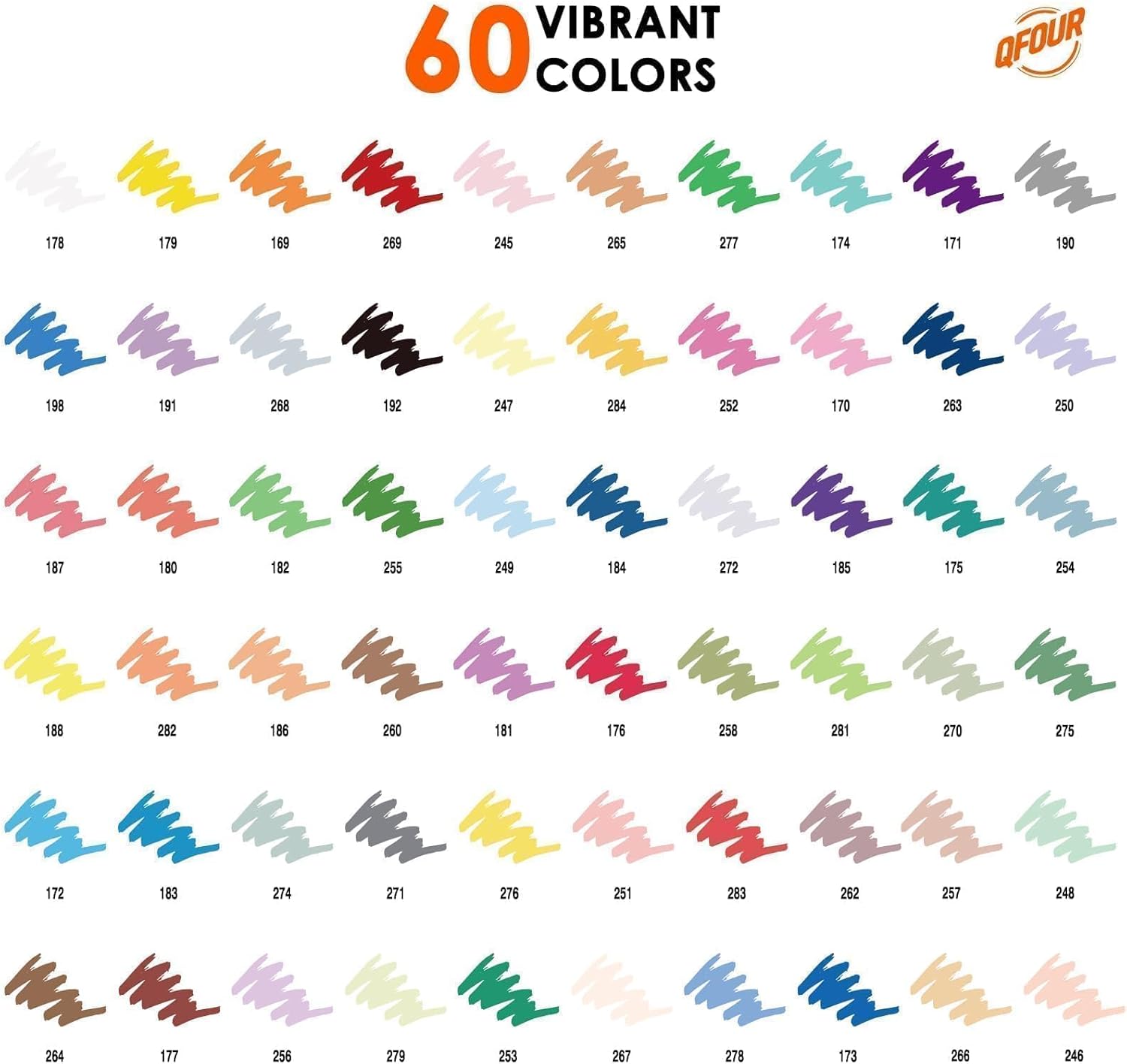- 60 Vibrant Colors: This set of acrylic paint markers includes 60 bright colors with color-matching caps and codes for easy identification. Perfect for use on rocks, wood, ceramics, glass, canvas, fabric, and more.