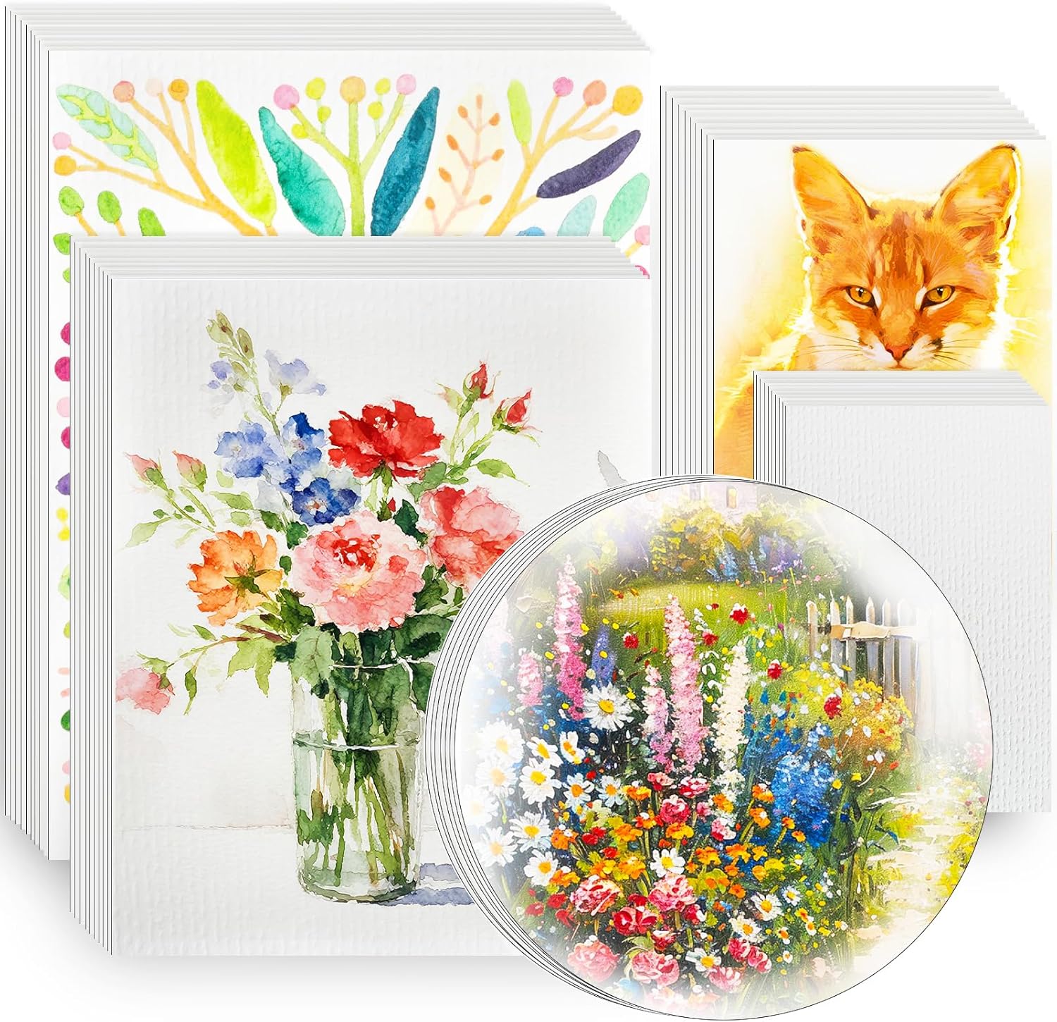 50 Sheets Watercolor Paper Bulk, 4"X6", 5"x7",8" x 8",8" x 10",9" x 12",Each 10 Sheets.140 lb/300 GSM Water Color Paper for Kids Adults.Watercolor Drawing Paint Paper for Art Drawing Supplies