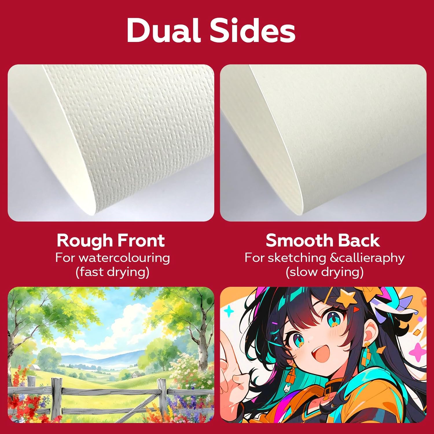 - 【Multipurpose】 Watercolor paperuitable for various art projects, finger paint,Sketch, watercolor, gouache, markers, gel painting, and more.You can freely express your imagination on a blank page