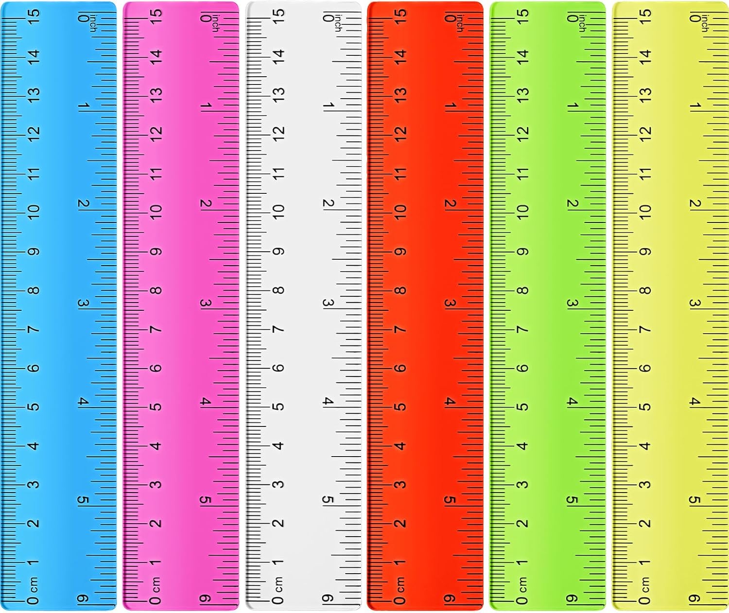 Zonon 6 Pcs 6 Inch Ruler Bulk Colorful Plastic Flexible Straight Metric Rulers with Centimeters and Inches Drafting Measuring Tool for Classroom School Students Education
