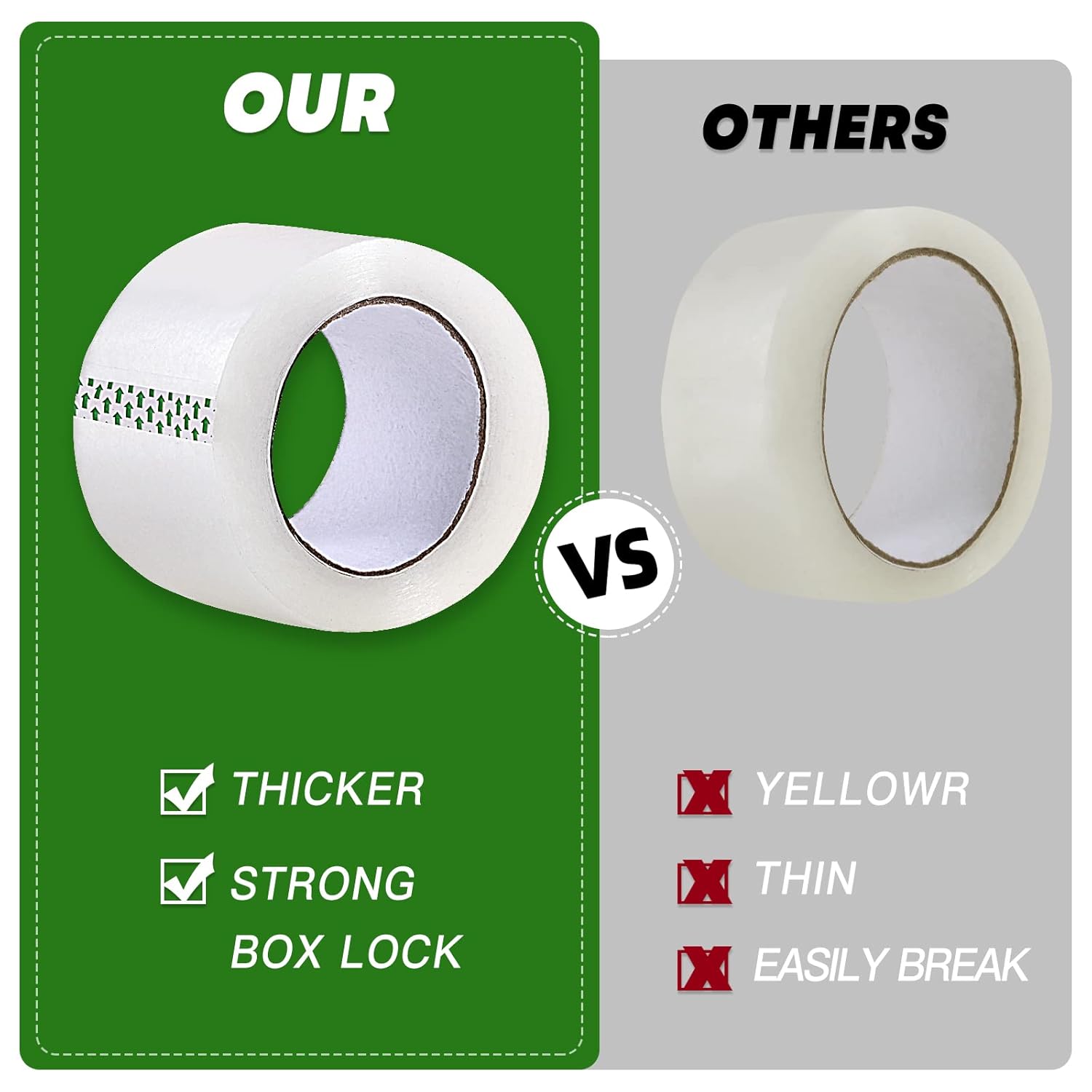 - Pack of 48 rolls of tape: High-quality packing tape refills designed specifically for all your shipping and packaging needs. With its thick and durable construction measuring 2 inch in width and 65 yards in length, This durable and strong tape will securely seal your boxes, ensuring the safety of your items during transit.