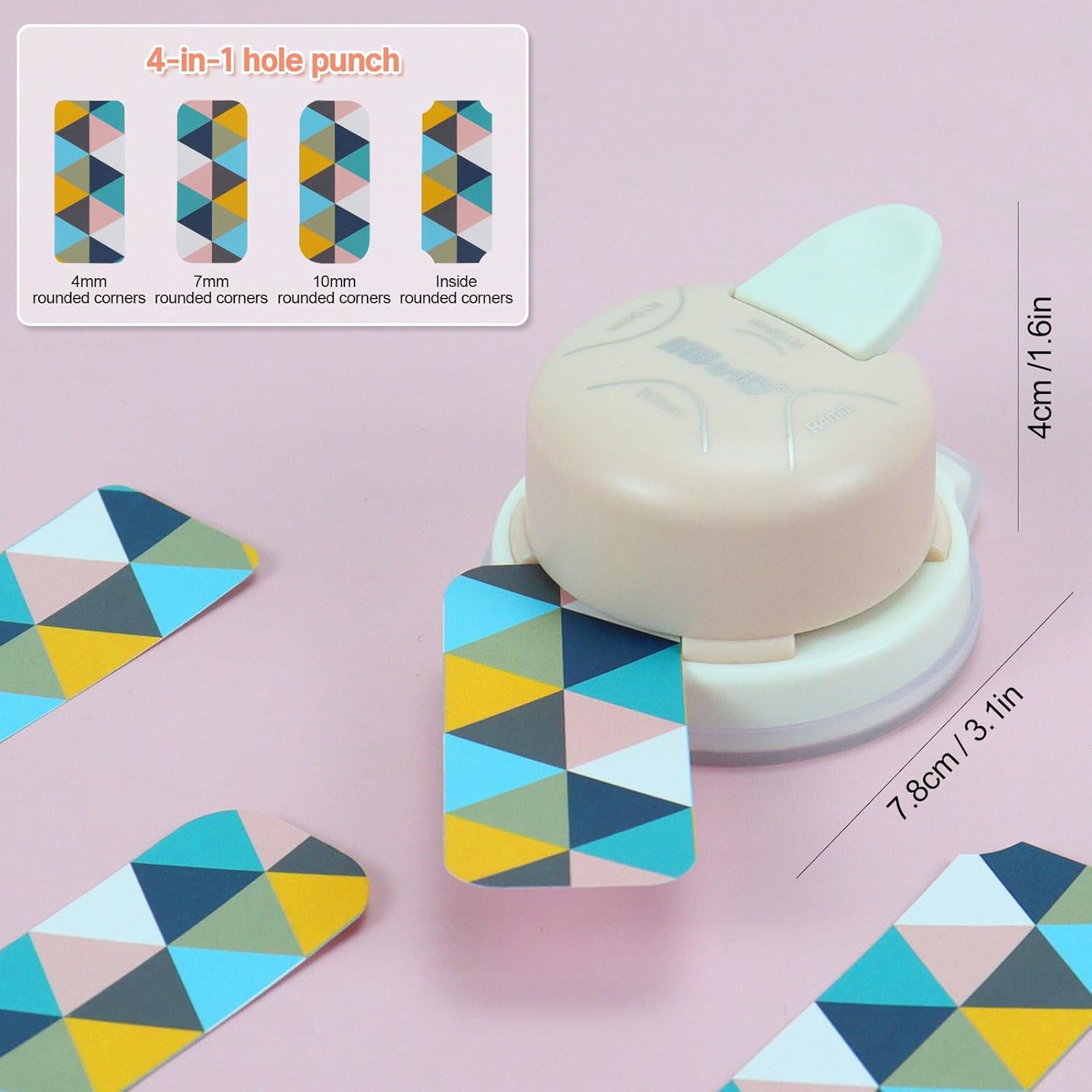 4 in 1 Corner Rounder Punch, Rounded Corner Hole Punch 4mm 7mm 10mm Corner Cutter for Crafts, DIY Projects, Photo, Card, Scrapbooking Making