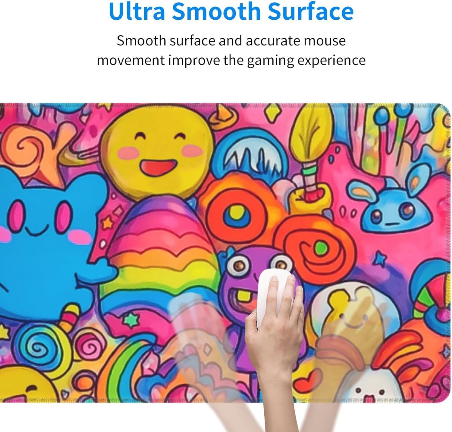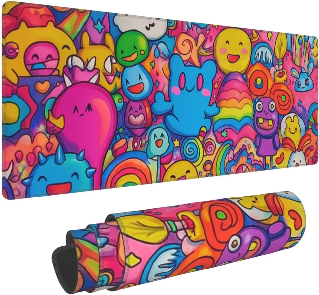 Cartoon Mouse Pad 31.5 X 11.8 Inch Big Desk Rubber Base Stitched Edges Keyboard Pad XXL Mouse Mat for Home Game and Office