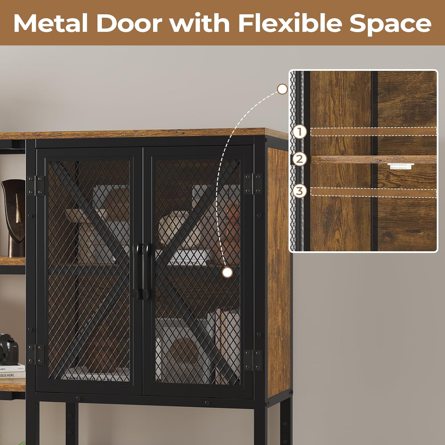 Corner Bookshelf, 5 Tier Industrial Convertible Bookshelf with 6 Fabric Drawers, Corner Bookcase Large L Shaped Storage Display Shelf for Home Office, Living Room, Kitchen, Rustic Brown