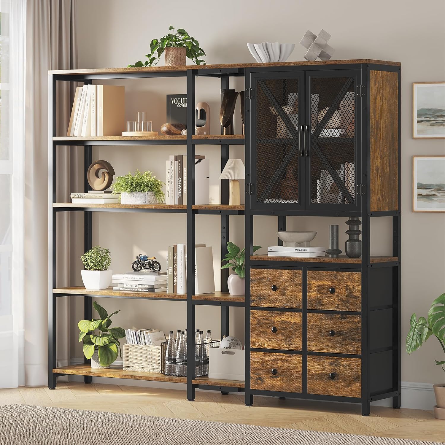 - ăStorage Masteryă-5 Tier bookcase shelves ample room to showcase your favorite books, decor, and keepsakes with style,6 storage fabric Drawers,1 adjustable storage cabinet, keep your items neatly tucked away, It's more than just storageâit's a statement piece that keeps your home tidy and everything easily accessible