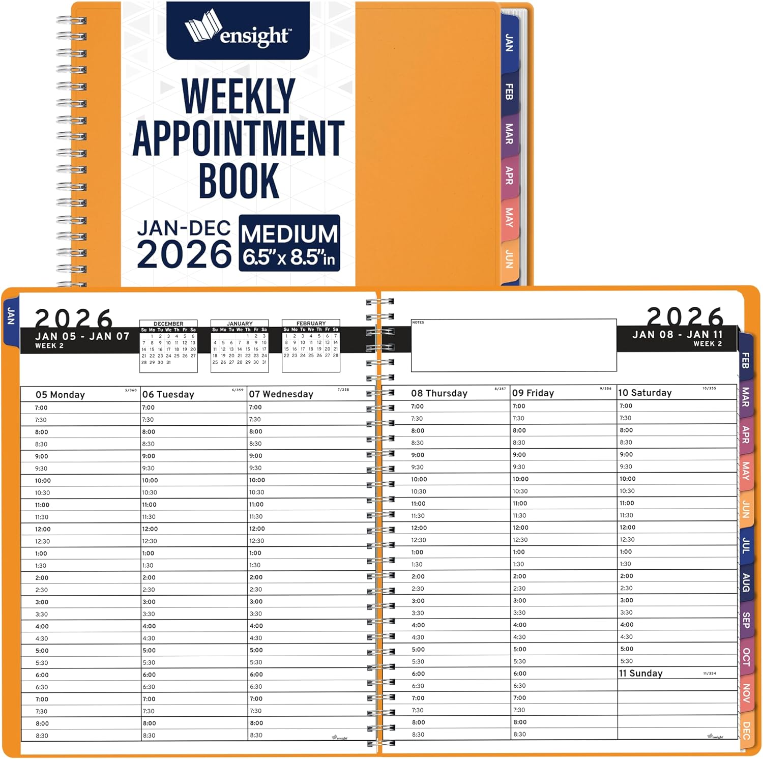 Ensight 2026 Appointment Book & Planner Ensight 6.5 x 8.5 inches Large Tabbed Daily Hourly Weekly Planner Schedule Book 30 Minute time Slots Business & Personal Planner Jan 2026 Dec 2026 Yellow