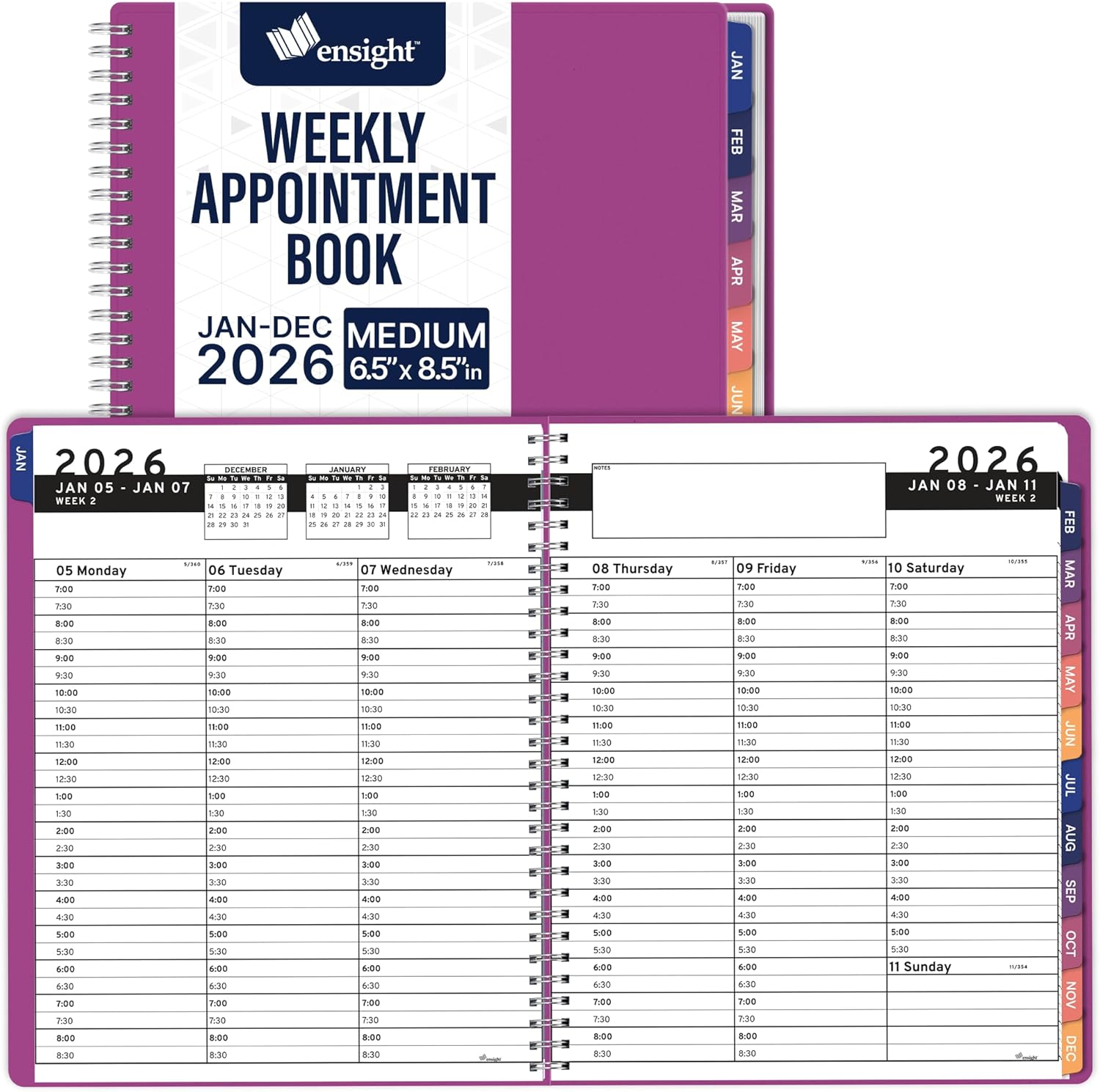 Ensight 2026 Appointment Book & Planner Ensight 6.5 x 8.5 inches Large Tabbed Daily Hourly Weekly Planner Schedule Book 30 Minute time Slots Business & Personal Planner Jan 2026 Dec 2026 Magenta