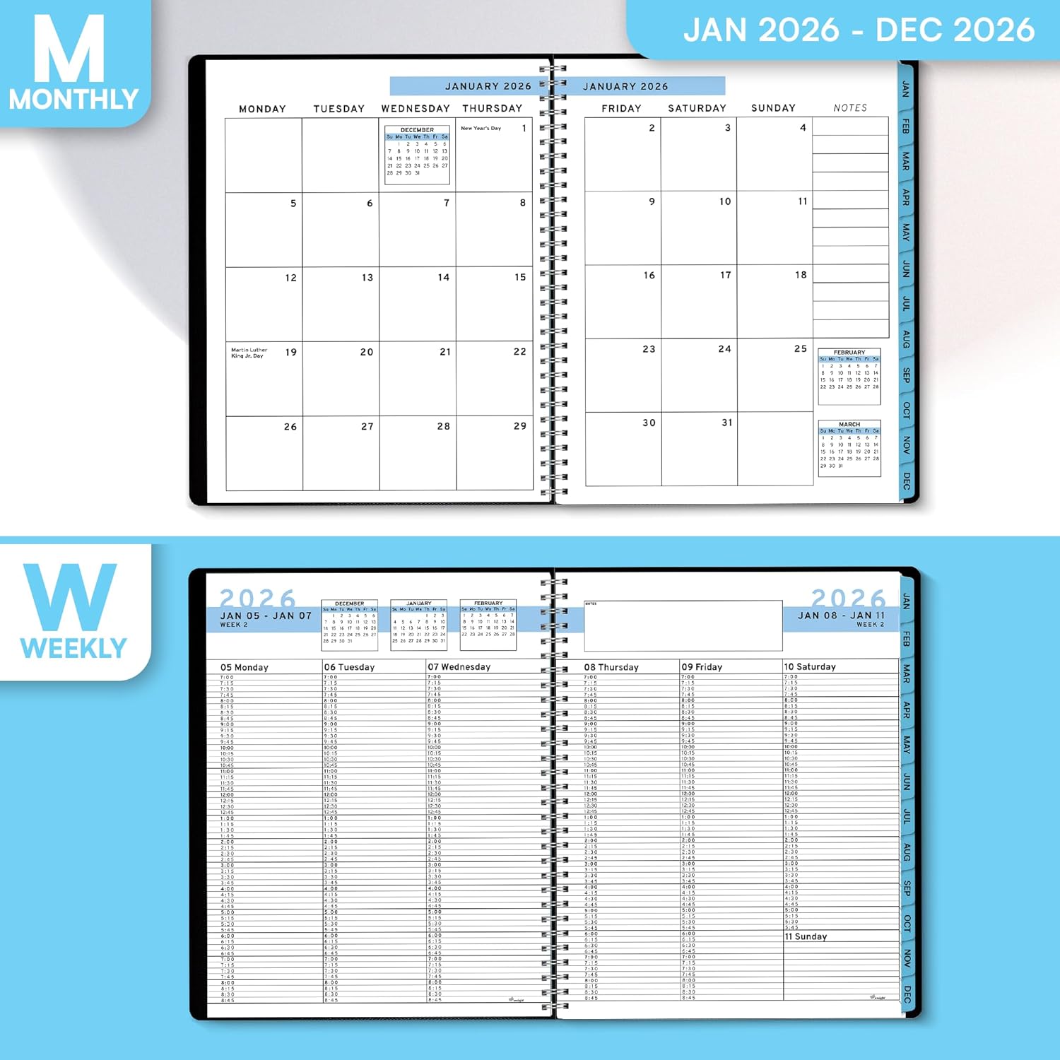 - ๐ฆ๐ข๐๐ง ๐๐ข๐ฉ๐๐ฅ & ๐ง๐ช๐๐ก ๐ช๐๐ฅ๐ ๐๐๐ก๐๐๐ก๐: Starts the Week Monday and Ends Sunday by using our 2026 weekly planner 8.5 x 11. Manufactured with top-quality strong blue PVC cover with extra strong twin-wire binding to prevent any tearing.