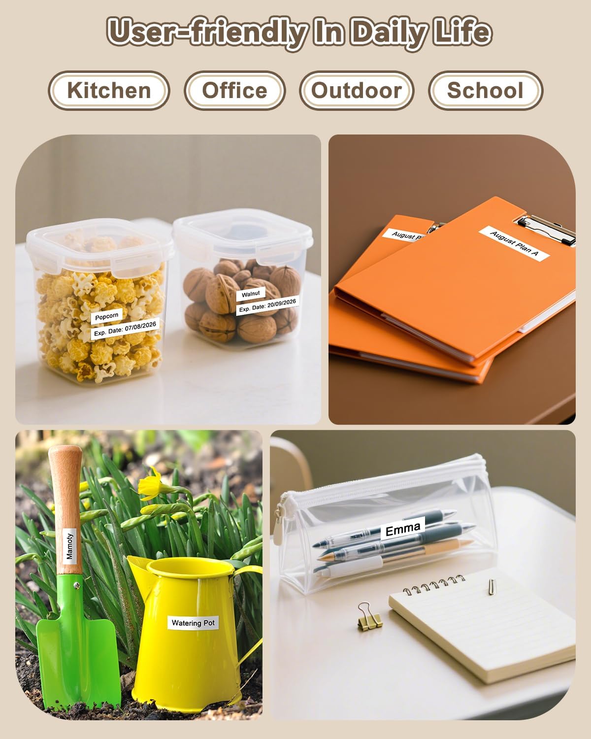 - Widely Applications for Indoor and Outdoor Use: The compatible with brother p touch label tape can adhere to plastic, paper, metal, wood, and glass and is suitable for labeling office supplies, electronic accessories, tools, kitchen items, garage equipment, garden items, crafts, gifts, files and more
