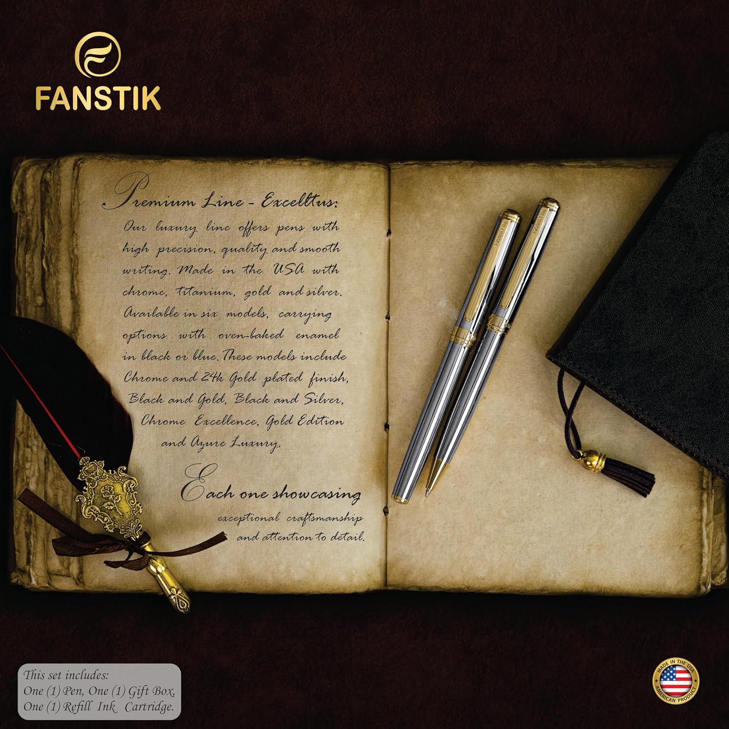 Customized Silver&Gold Luxury fountain pen (Made In USA) fancy gift set for women, Real 24K Gold Plating, Professional executive pen gift set for men (Lux Custom-fountain Silver-Gold)