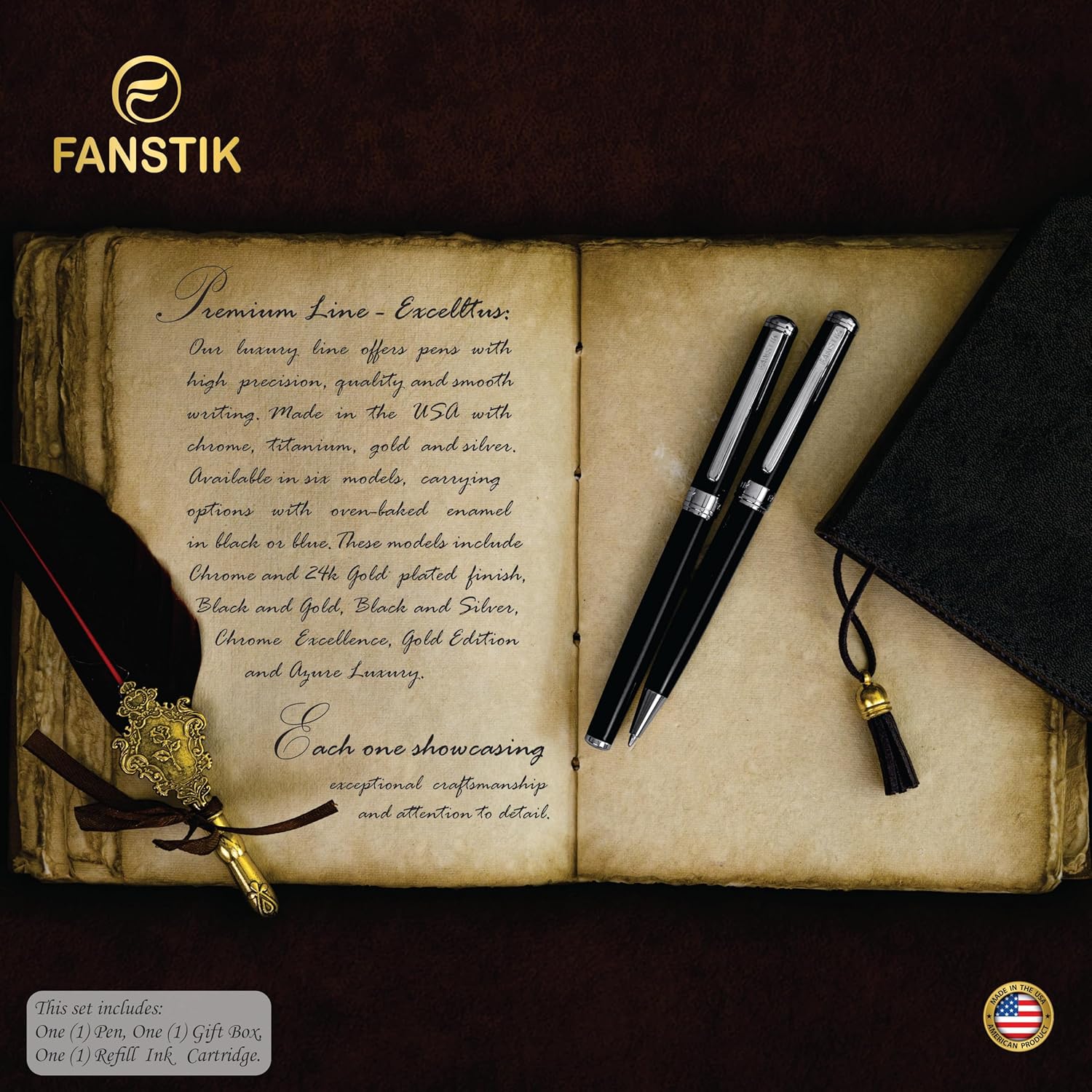 Black & Silver Luxury ballpoint Pen (Made In USA) fancy gift set for women, Real 24K Gold Plating, Professional executive pen gift set for men (Lux BallPoint Black-Silver)