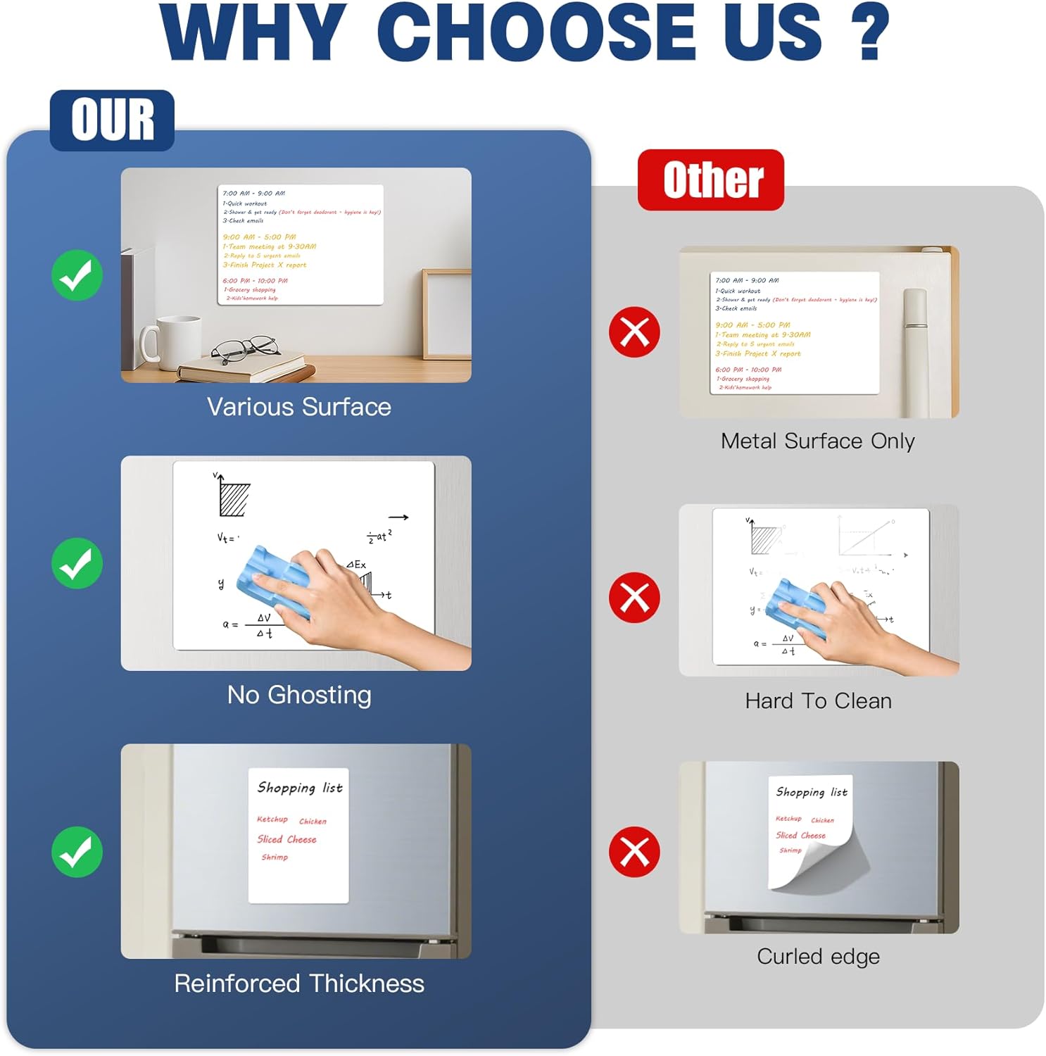 - đReusable & Eco-Friendly đšInfinite Reusability: Reposition schedules, lesson plans, or doodles without losing stickinessâideal for evolving spaces. Planet-Friendly: Our non-magnetic whiteboard is made from a smooth nano surface, pure white coating and foam with strong adhesive,1 film = 1,000+ paper notes saved