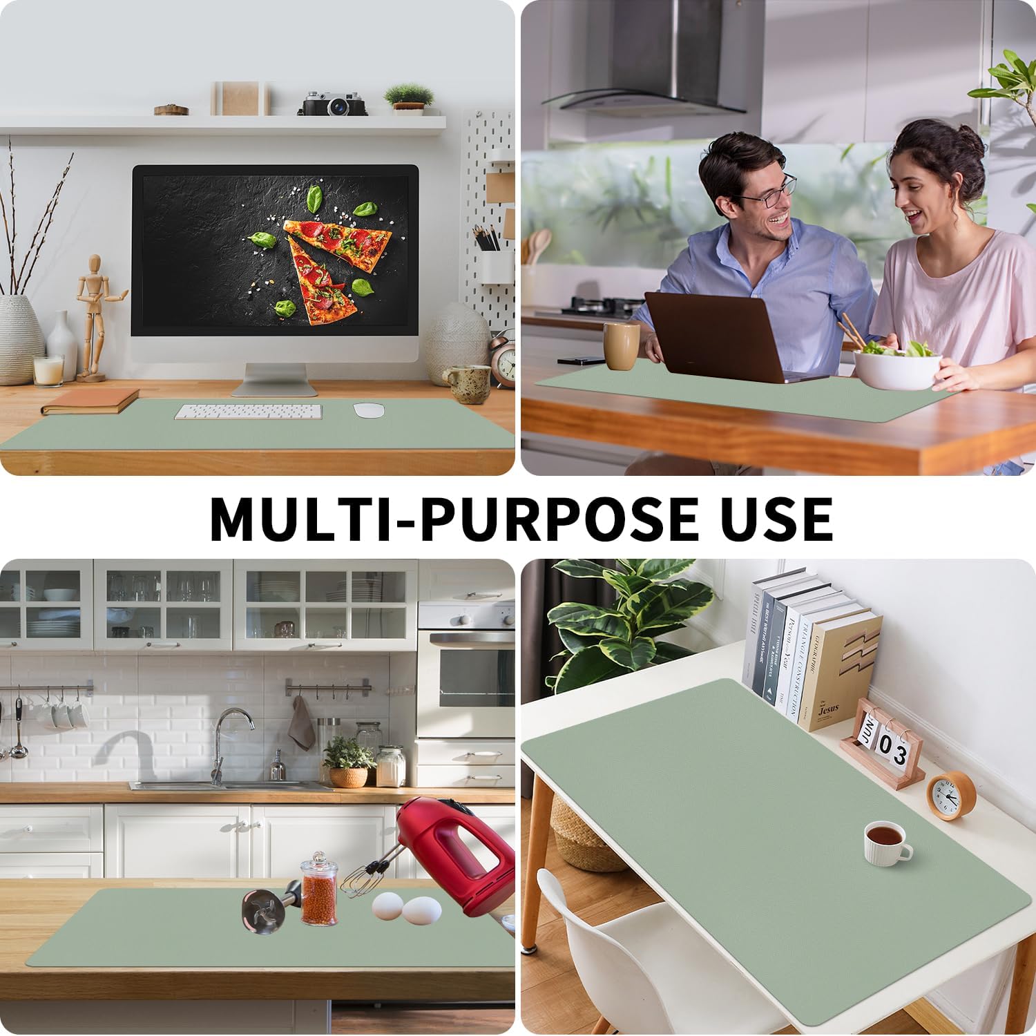 - 【Large Size Multipurpose】The 31.5×15.7 inch large size keyboard pad is large enough to hold a laptop, mouse, keyboard and mug. 2mm thickness provides you with a comfortable soft touch, you can use it as a writing pad, desk pad, mouse pad or desktop organizer for kitchen and office.