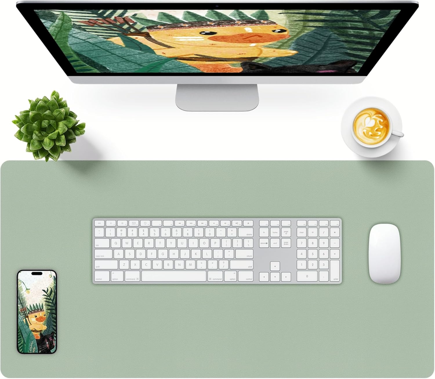 Bloss Leather Desk Mat, Large Mouse Pad, Non-Slip Desk Protector Mat, Leather Desk Blotter, Waterproof Desk Pad for Office Home Decor/Grey Green(31.5×15.7 Inches)