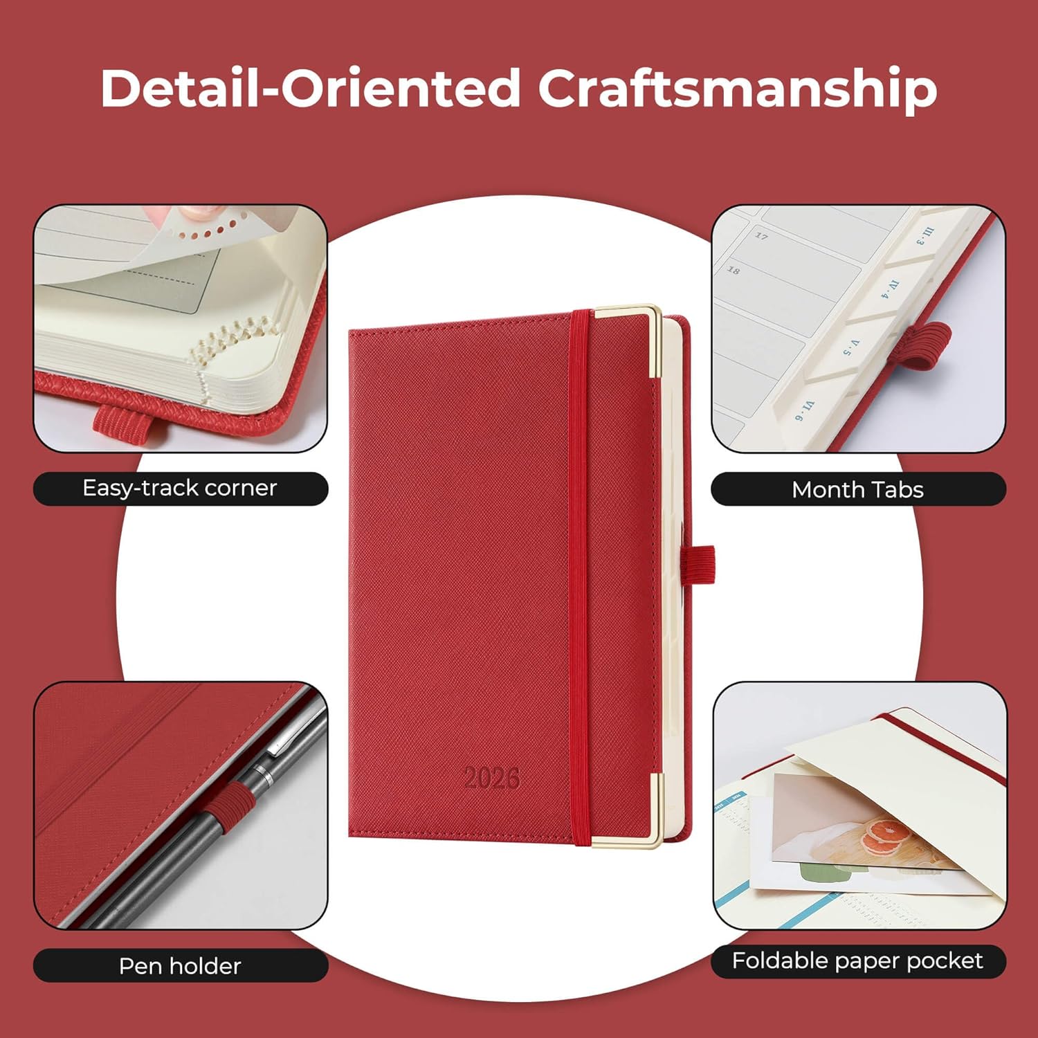 - Thoughtful Design: The monthly tabs on the side of the daily planner can easy locate the current date; The easy-track corner design and ribbon marker make it easy to flip through the small planner. The last page of the 2026 planner daily has an expanded inner pocket that has a small space for storage of cards