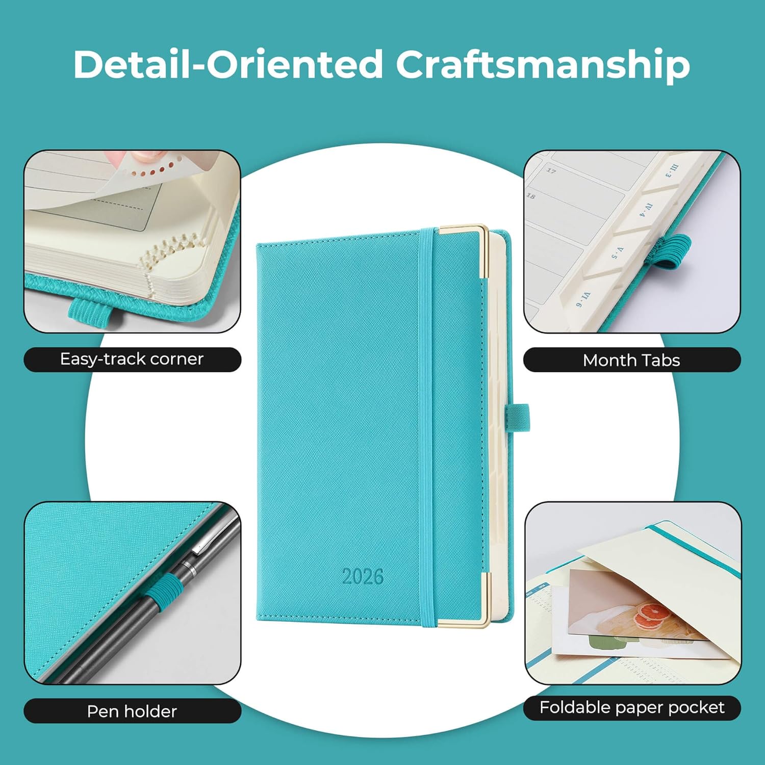- Thoughtful Design: The monthly tabs on the side of the daily planner can easy locate the current date; The easy-track corner design and ribbon marker make it easy to flip through the small planner. The last page of the 2026 planner daily has an expanded inner pocket that has a small space for storage of cards