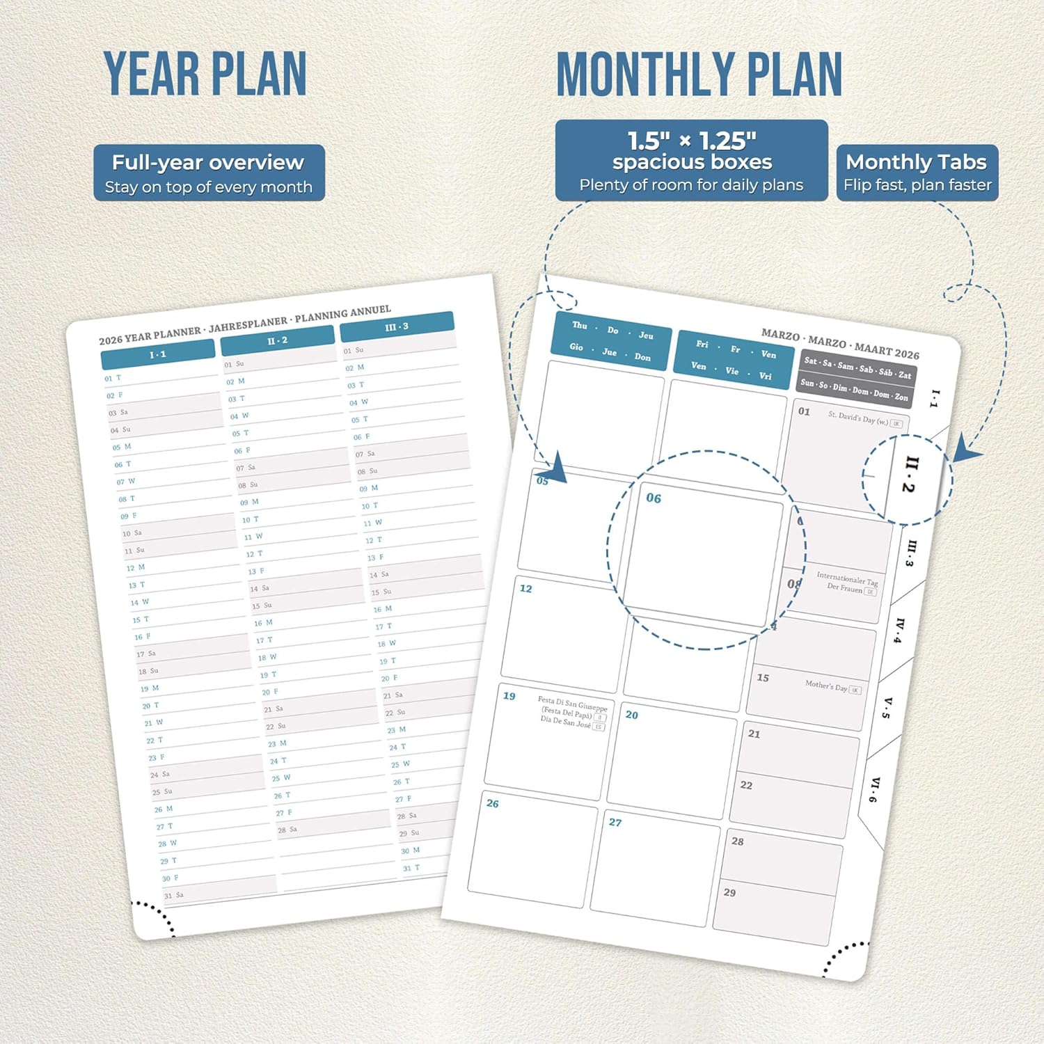 - Professional Grade Material for Your Daily Planner: Crafted with FSC 80GSM thick paper, this day planner 2026 daily and monthly ensures good writing while gentle on your eyes through its ivory white pages. The leather soft cover and lay flat binding make it a calendar planner companion for busy professionals, students, and families