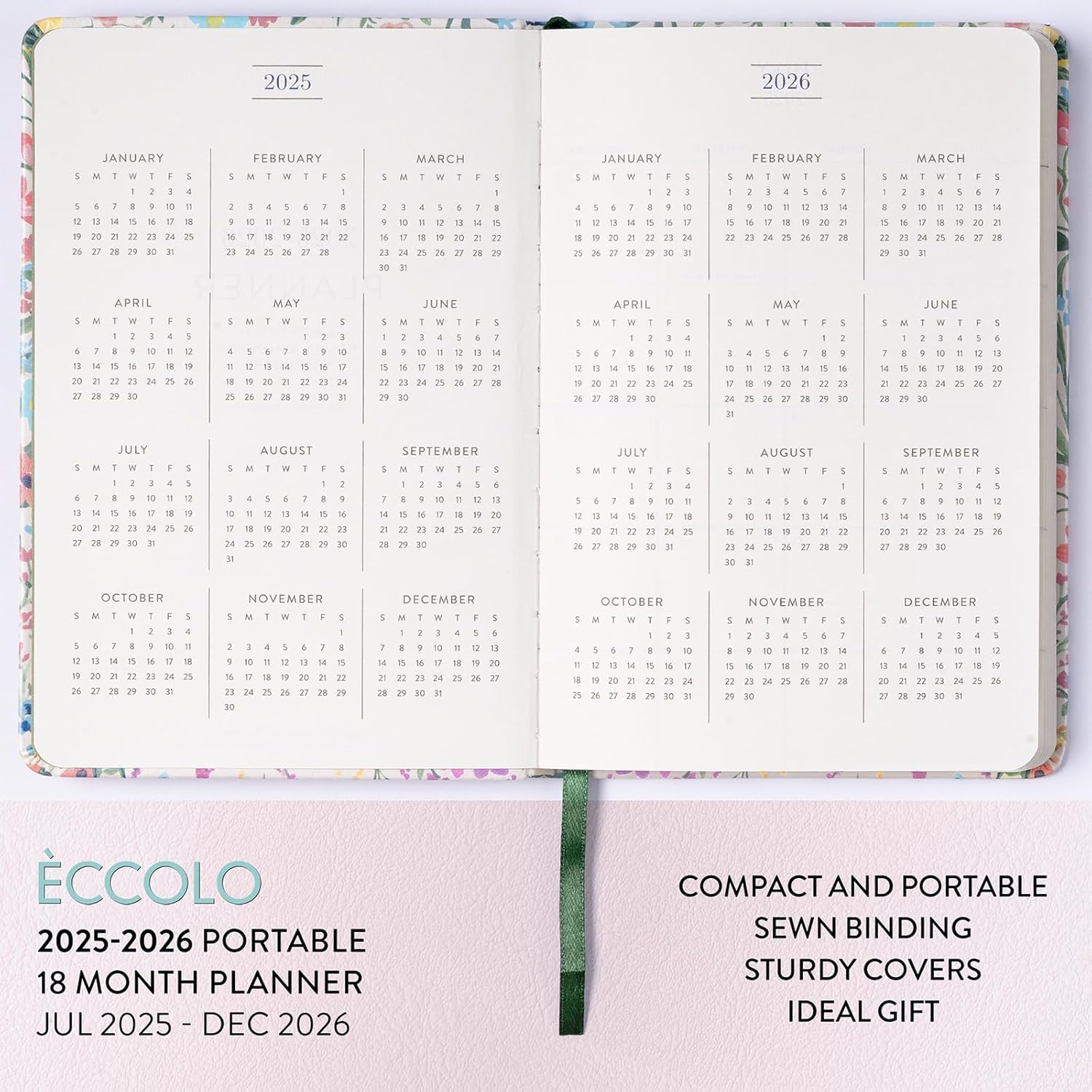 2025-2026 Eccolo 18 Month Bound Planner, Monthly & Weekly Pages (5.25 x 7.75" - July 2025 - Dec 2026 - Flower Garden)