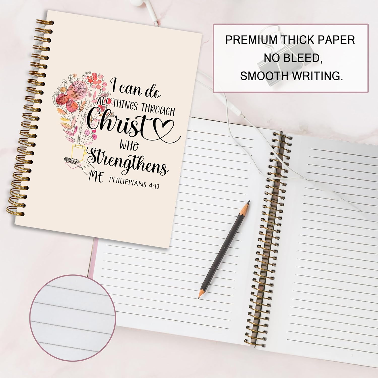 - 1.Inspirational Bible Verse Design –"-I Can Do All Things Through Christ Who Strengthens Me" A5 Size (8.3x 5.8inches,80 Sheets -160 Pages) Christian journal notebook, Bible Journal, Scripture Notebook, Christian Affirmations, Bible Study Notebook, Bible Verse Gift