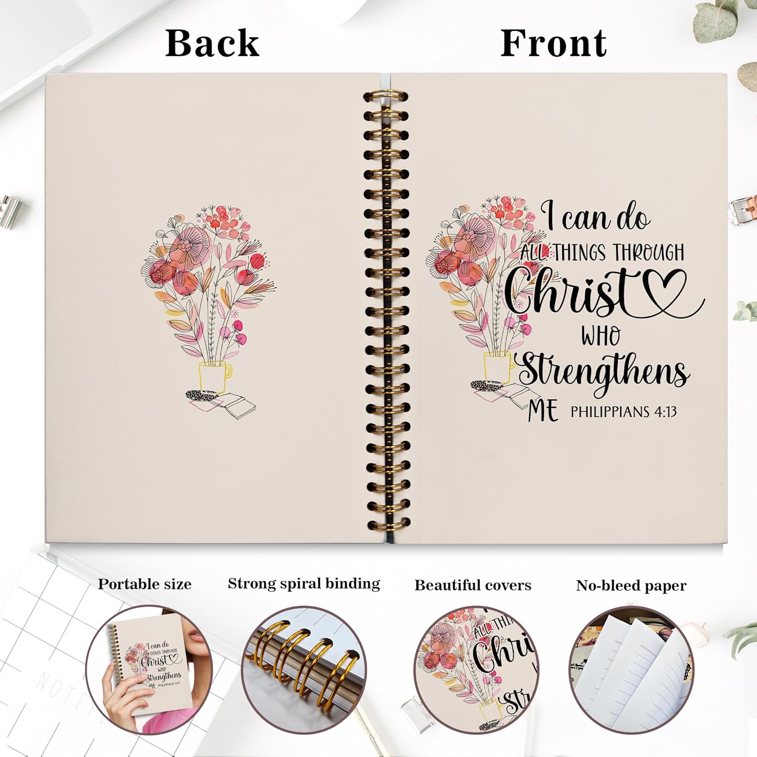 Bible Notebook, A5 Spiral Christian Journal Pink Floral Notebook, Bible Verse-I Can Do All Things Through Christ Who Strengthens Me, Inspirational Notebooks for Women, Gift for Birthday Christmas